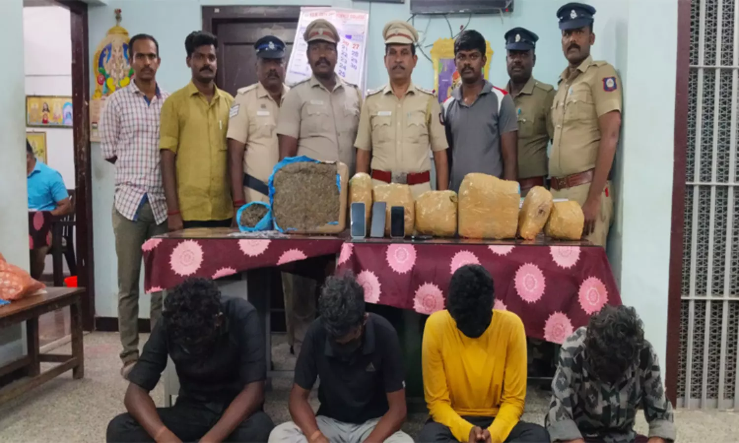 தூத்துக்குடி மாவட்டம், கோவில்பட்டி கிழக்கு காவல் நிலைய போலீசாருக்கு கிடைத்த ரகசிய தகவலின் பேரில் மாவட்ட எஸ்.பி. ஆல்பர்ட் ஜான் உத்தரவின்படி, கோவில்பட்டி உட்கோட்ட டி.எஸ்.பி. ஜெகநாதன் மேற்பார்வையில், கோவில்பட்டி கிழக்கு போலீஸ் இன்ஸ்பெக்டர் ஜின்னா பீர்முகமது தலைமையில் சப்-இன்ஸ்பெக்டர் செந்தில்வேல்முருகன் மற்றும் போலீசார் நேற்று முன்தினம் (27.04.2025) கோவில்பட்டி அருகே மூப்பன்பட்டி சுடுகாட்டு பகுதியில் ரோந்து பணியில் ஈடுபட்டனர். அப்போது அங்கு சந்தேகப்படும்படி இருந்த ஒரு காரை சோதனை செய்தனர். அதில் கோவில்பட்டி கழுகாசலபுரம் பகுதியைச் சேர்ந்த உதயகுமார் மகன் அருண்குமார் (வயது 23), கயத்தாறு நாகலாபுரம் பகுதியைச் சேர்ந்த முருகன் மகன் கொம்பையாபாண்டியன் (21), கயத்தாறு தெற்கு கோனார்கோட்டை பகுதியைச் சேர்ந்த தங்கராஜ் மகன் மகாராஜா (19) மற்றும் கோவில்பட்டி வ.உ.சி. நகரைச் சேர்ந்த குருநாதன் மகன் கார்த்திக் (20) ஆகியோர் இருந்ததும், அவர்கள் விற்பனைக்காக காரில் கஞ்சா வைத்திருந்ததும் தெரியவந்தது.