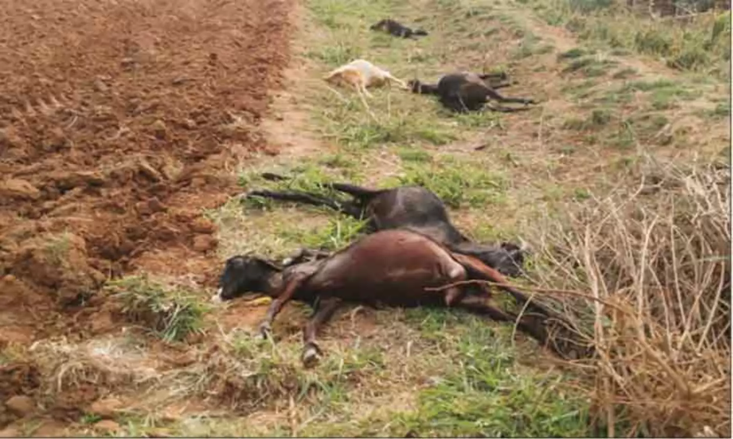 உரக்கரைசல் கலந்த தண்ணீரை குடித்த 40 ஆடுகள் பலி