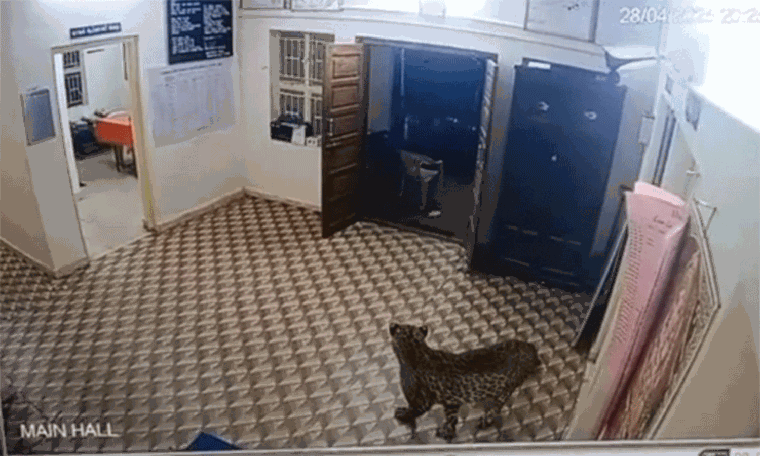 போலீஸ் நிலையத்திற்குள் நுழைந்து காவலரை அலறவிட்ட சிறுத்தை! - அதிர்ச்சி வீடியோ