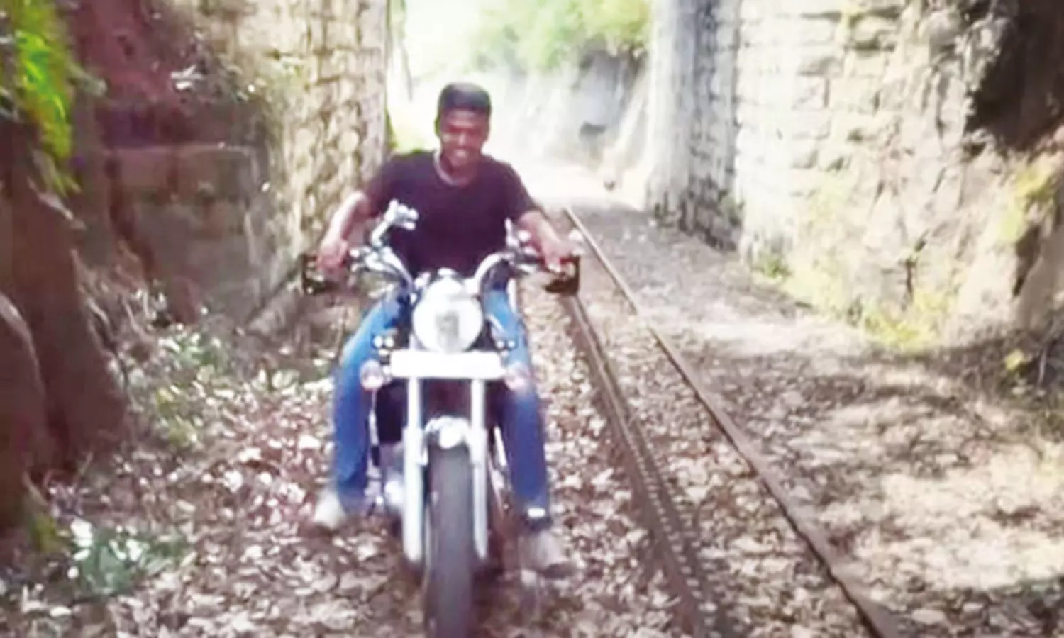 ரீல்ஸ் மோகம்: தண்டவாளத்தில் பைக் ஓட்டிச்சென்ற வாலிபர் - வைரலாகும் வீடியோ