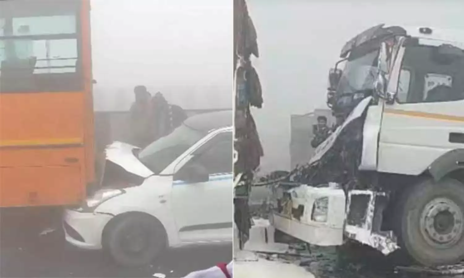 3 பஸ்கர்கள், ஒரு லாரி மற்றும் பல்வேறு கார்கள் உள்பட ஏராளமான வாகனங்கள் சேதமடைந்துள்ளன. கோரக்பூரில் இருந்து மீரட் நோக்கி சென்று கொண்டிருந்த பஸ் ஒன்று லாரியின் மீது மோதியதைத் தொடர்ந்து, பின்னால் வந்த வாகனங்கள் ஒன்றின்பின் ஒன்றாக மோதி நின்றதால் இந்த விபத்து அரங்கேறியுள்ளது.