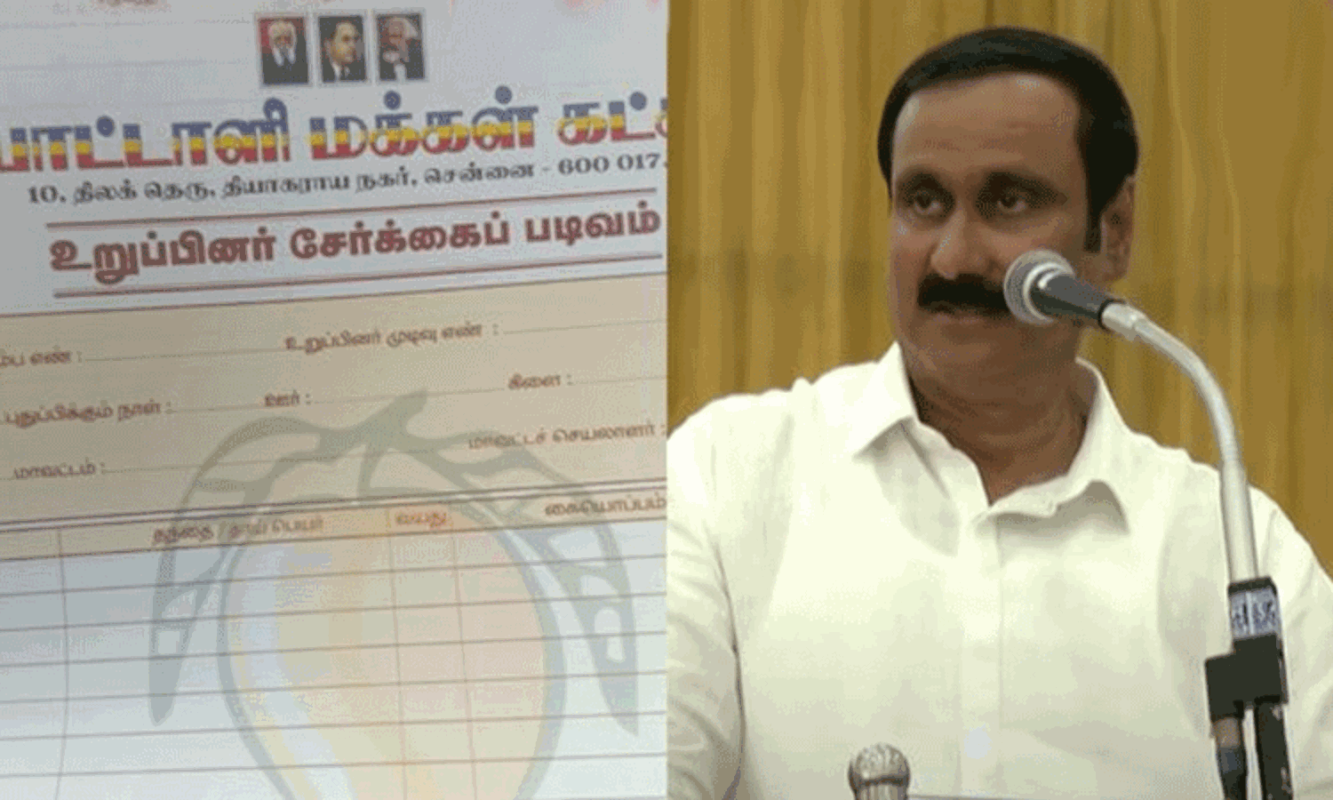 அன்புமணி வெளியிட்ட புதிய உறுப்பினர் சேர்க்கை படிவத்தில் பாமக அலுவலகத்தின் முகவரி மாற்றப்பட்டுள்ளது.;