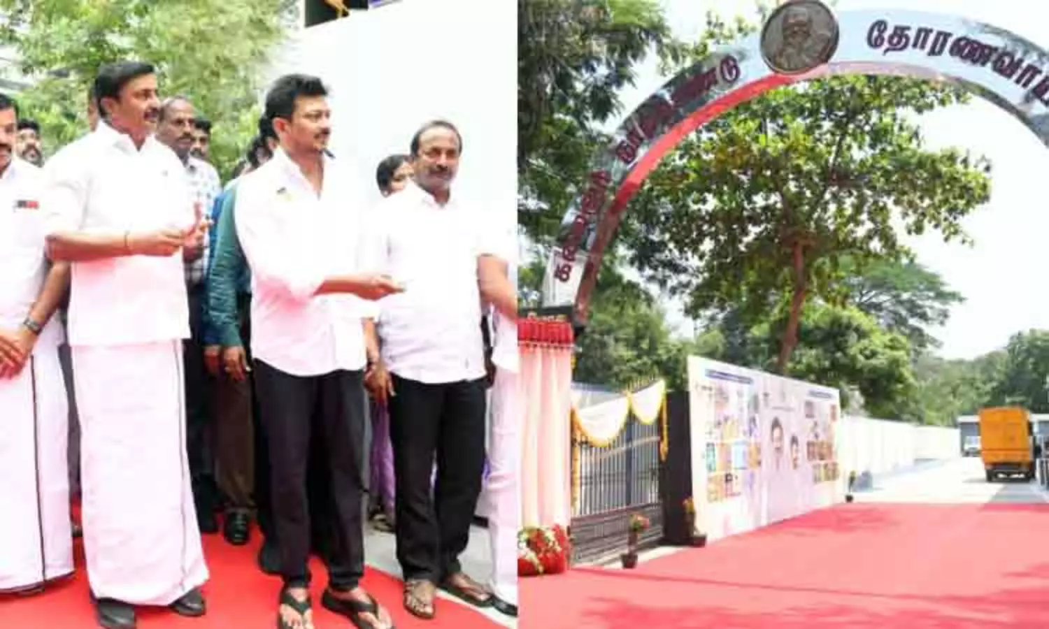 தமிழரசு இதழ் அலுவலக வளாகத்தில் கலைஞர் நூற்றாண்டு தோரணவாயில்: உதயநிதி ஸ்டாலின் திறந்து வைத்தார்