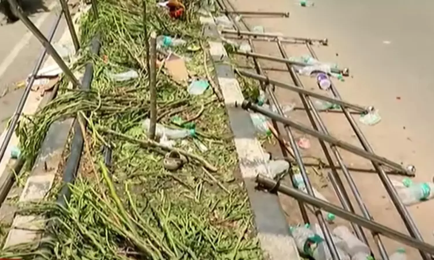 பொது சொத்துக்களை சேதப்படுத்தியதாக தவெகவினரை பலர் விமர்சித்தனர்.;