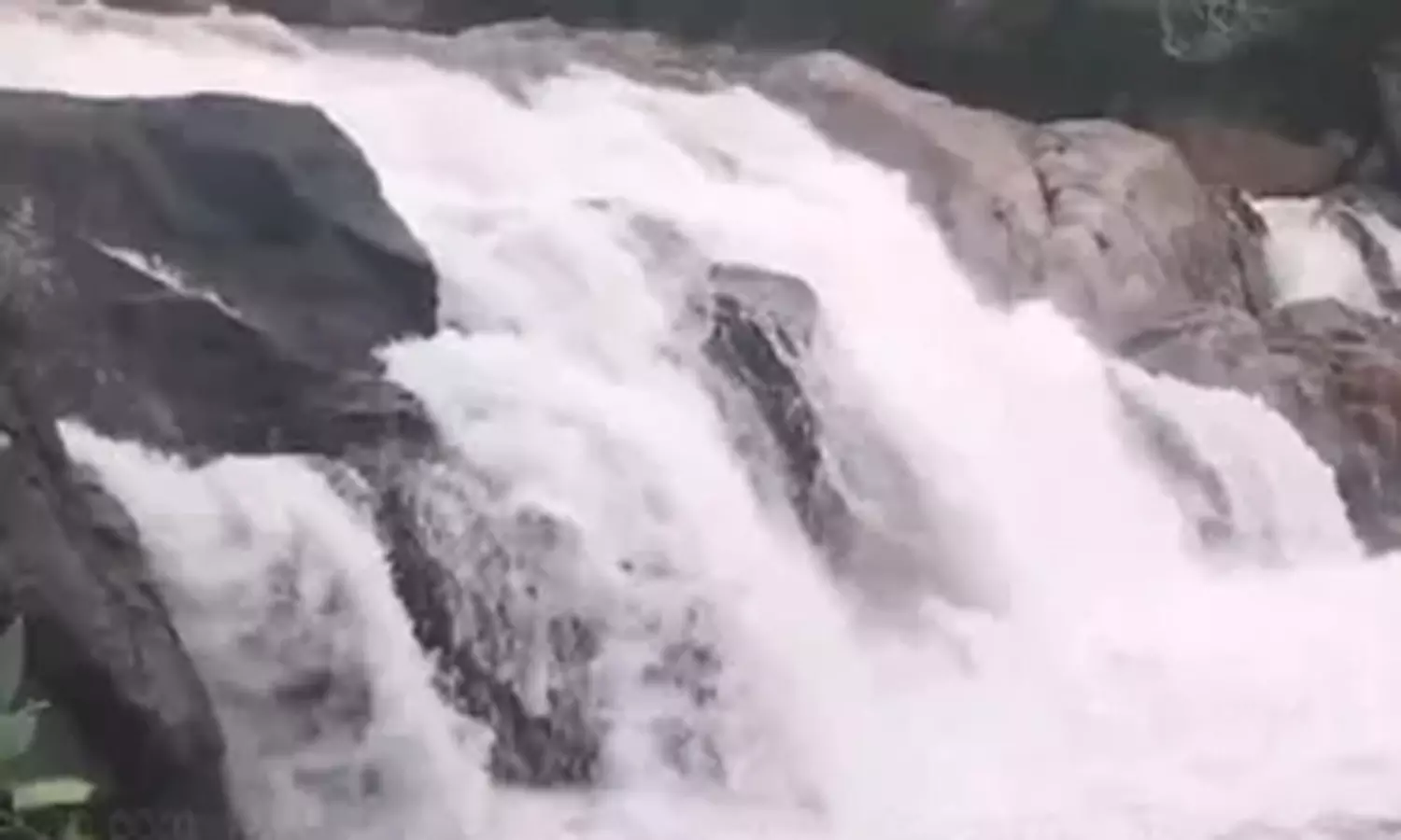 தொடர் மழையால் மணிமுத்தாறு அருவியில் வெள்ளப்பெருக்கு ஏற்பட்டுள்ளது.;