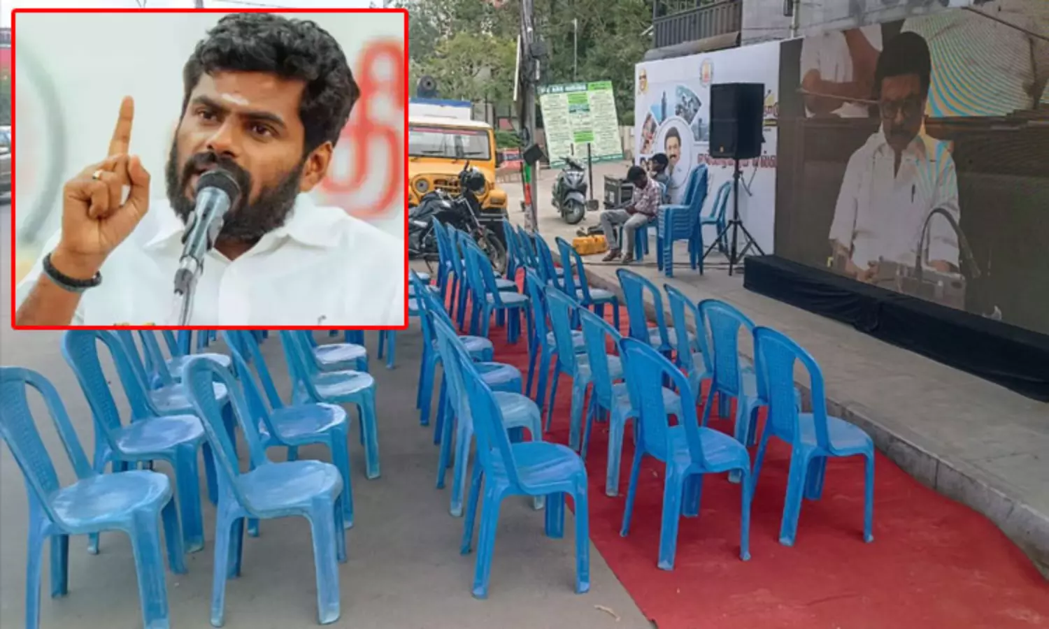 இந்த பட்ஜெட் தாக்கல் தமிழகம் முழுவதும் 936 இடங்களில் நேரடி ஒளிபரப்பு செய்யப்பட்டது. இந்த நிலையில் நேரடி ஒளிபரப்பு செய்யப்பட்ட இடங்களில் ஒன்றில் போடப்பட்டிருந்த நாற்காலிகள் காலியாக இருக்கும் புகைப்படத்தை பகிர்ந்துள்ள தமிழக பா.ஜ.க. தலைவர் அண்ணாமலை, தி.மு.க. வெளியிடும் பட்ஜெட்டும், இது போன்று காலியாக இருப்பதில் வியப்பில்லை என்று கூறியுள்ளார்.