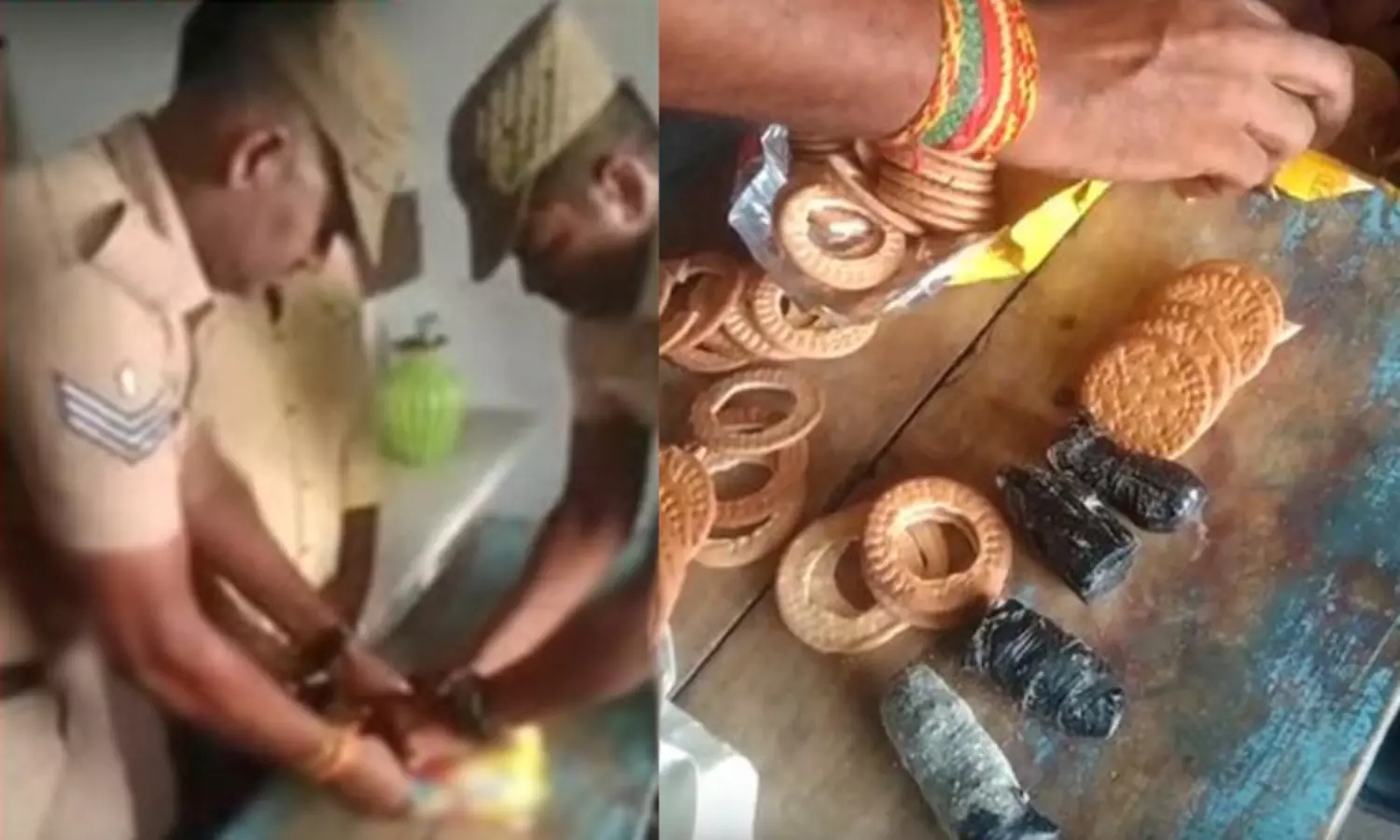 தருமபுரியைச் சேர்ந்த முகமது சுகில் என்பவர் சேலம் மத்திய சிறையில் இருக்கும் கைதி ஒருவரை பார்க்க சென்றார். அபோது கைதி ஒருவருக்கு பிஸ்கட் பாக்கெட்டுகளை கொடுக்க முயற்சி செய்தார். அப்போது அங்கிருந்த காவலர் ஒருவர் சந்தேகத்தின் பேரில் பிஸ்கட் பாக்கெட்டை பிரித்து பார்த்துள்ளார்.