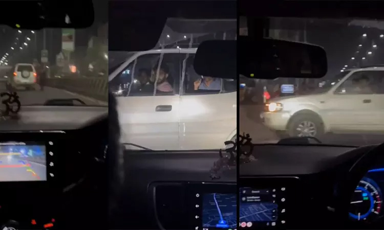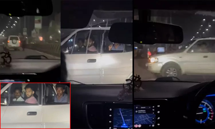 அப்போது, அவர்கள் சென்ற காரை, 2 கார்களில் வந்த 8 இளைஞர்கள் நடுரோட்டில் இடைமறித்தனர். மேலும், இளம்பெண்களையும், அவருடன் வந்தவர்களையும் அச்சுறுத்தும் வகையில் நடுரோட்டில் காரை மறித்து அவர்களின் காரை நோக்கி ஓடி வந்தனர்.