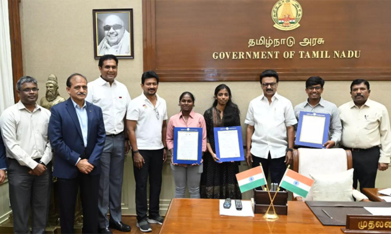 அதன் தொடர்ச்சியாக, தமிழ்நாடு முதல்-அமைச்சர் இன்றைய தினம், சீனாவின் ஹாங்ஷோவில் நடைபெற்ற 19-வது ஆசிய விளையாட்டுப் போட்டியில் 2-வது இடம் பெற்ற சதுரங்க விளையாட்டு வீராங்கனை ஆர்.வைஷாலிக்கு தமிழ்நாடு தொழில் முதலீட்டு கழகத்தில் இளநிலை அலுவலர் (தரம் III) பணியிடத்திற்கும், நேபாள நாட்டின் போக்ராவில் நடைபெற்ற 13-வது தெற்காசிய விளையாட்டுப் போட்டியில் முதல் இடம் பெற்ற கால்பந்து வீராங்கனை கே. சுமித்ராவுக்கு தமிழ்நாடு தொழில் வளர்ச்சி நிறுவனத்தில் கணக்காளர் பணியிடத்திற்கும், நேபாள நாட்டின் போக்ராவில் நடைபெற்ற 13-வது தெற்காசிய விளையாட்டுப் போட்டியில் முதல் இடம் பெற்ற கூடைப்பந்து வீராங்கனை எஸ்.சத்யாவுக்கு தமிழ்நாடு சிமெண்ட்ஸ் கழகத்தில் மார்க்கெட்டிங் நிர்வாகி பணியிடத்திற்கும், சீனாவின் ஹாங்ஷோவில் நடைபெற்ற 19-வது ஆசிய விளையாட்டுப் போட்டியில் பங்கேற்ற பாய்மர படகு போட்டி வீரர் பி. சித்ரேஷ் தத்தாவுக்கு சிப்காட் நிறுவனத்தில் உதவி அலுவலர் பணியிடத்திற்கும், என 4 விளையாட்டு வீரர்களுக்கு பணி நியமன ஆணைகளை வழங்கி, வாழ்த்தினார்.”