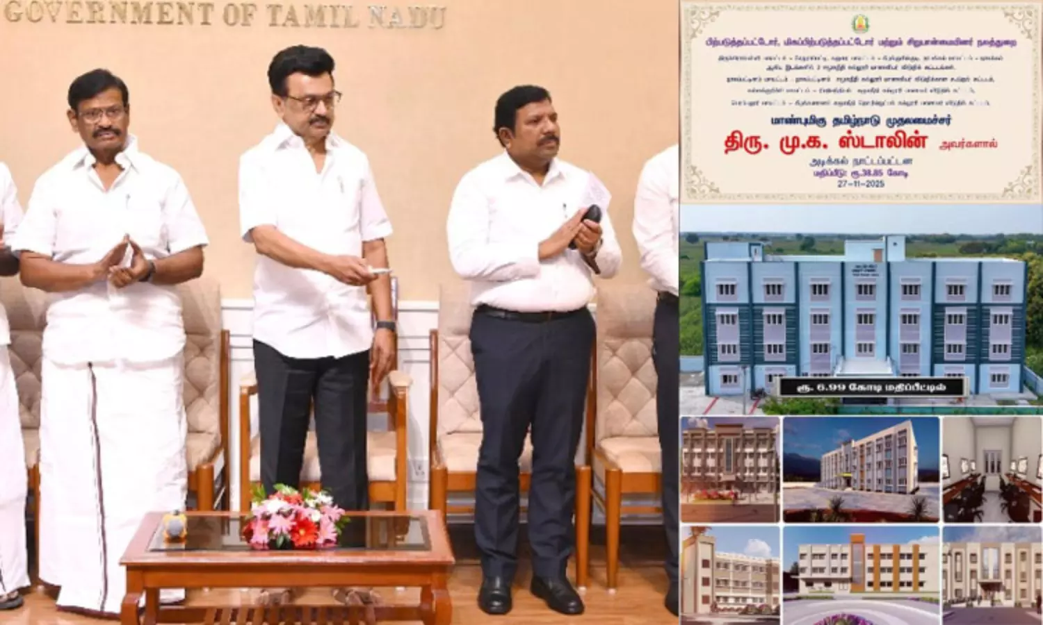 தமிழ்நாடு முதல-அமைச்சர் மு.க. ஸ்டாலின் இன்று (27.11.2025) தலைமைச் செயலகத்தில், பிற்படுத்தப்பட்டோர், மிகப்பிற்படுத்தப்பட்டோர் மற்றும் சிறுபான்மையினர் நலத்துறை சார்பில் 10 கோடியே 79 லட்சம் ரூபாய் செலவில் கட்டப்பட்டுள்ள கட்டிடங்களை திறந்து வைத்து, 38 கோடியே 85 லட்சம் ரூபாய் மதிப்பீட்டில் கட்டப்படவுள்ள சமூகநீதி கல்லூரி மாணவர் மற்றும் மாணவிகளுக்கான விடுதிக் கட்டிடங்களுக்கு அடிக்கல் நாட்டினார். மேலும், கருணை அடிப்படையில் 50 வாரிசுதாரர்களுக்கு பணி நியமன ஆணைகளையும், தமிழ்நாடு வக்பு வாரியத்திற்கு தொன்மையான 9 பள்ளிவாசல்கள் மற்றும் தர்காக்களை பழுதுபார்பதற்காகவும் புனரமைப்பதற்காகவும் அரசு மானியத்திற்கான முதல் தவணை தொகையாக 4.45 கோடி ரூபாய்க்கான காசோலைகளை சம்பந்தப்பட்ட பள்ளிவாசல் நிர்வாகிகளுக்கு வழங்கினார்.