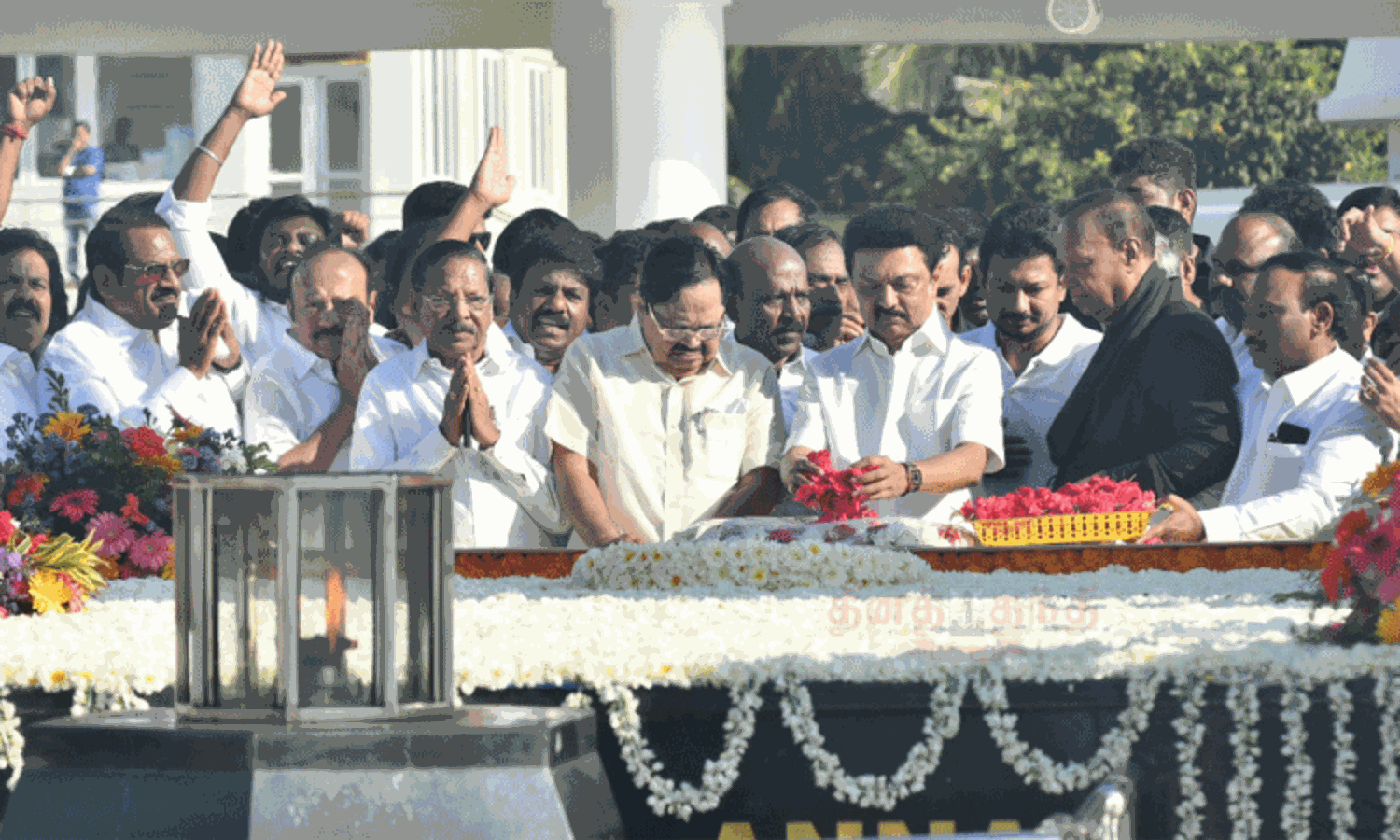 இந்நிலையில் அண்ணா நினைவிடத்தில் மலர் வளையம் வைத்து மலர் தூவி முதல்-அமைச்சர் மு.க.ஸ்டாலின் அஞ்சலி செலுத்தினார். முன்னதாக மெரினாவில் கலைஞர் கருணாநிதி நினைவிடத்திலும் முதல்-அமைச்சர் மு.க.ஸ்டாலின் மரியாதை செய்தார்.