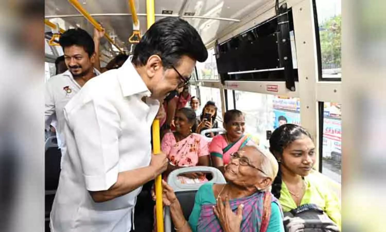 முதல்-அமைச்சர் மு.க. ஸ்டாலின் மாநகரப் பேருந்தில் பயணம் செய்து “மகளிர் விடியல் பயணத் திட்டம்” குறித்து பயணிகளிடம் உரையாடினார்.;