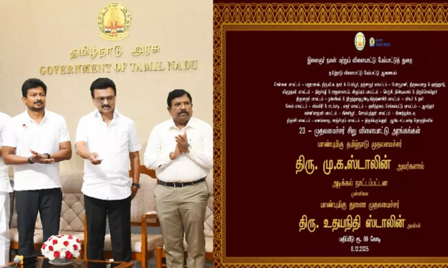 தற்போது மூன்றாவது கட்டமாக கிருஷ்ணகிரி மாவட்டம் - பர்கூர் மற்றும் தளி சட்டமன்ற தொகுதிகளிலும், தஞ்சாவூர் மாவட்டம் - பேராவூரணி, திருவையாறு மற்றும் ஒரத்தநாடு சட்டமன்ற தொகுதிகளிலும், கோயம்புத்தூர் மாவட்டம் - கிணத்துக்கடவு சட்டமன்ற தொகுதியிலும், திருச்சிராப்பள்ளி மாவட்டம் – மணப்பாறை சட்டமன்ற தொகுதியிலும், விழுப்புரம் மாவட்டம் - செஞ்சி, திண்டிவனம் மற்றும் திருக்கோவிலூர் சட்டமன்ற தொகுதிகளிலும், சென்னை மாவட்டம் - மதுரவாயல், திரு.வி.க.நகர் மற்றும் பெரம்பூர் சட்டமன்ற தொகுதிகளிலும், விருதுநகர் மாவட்டம் – திருச்சுழி மற்றும் ராஜபாளையம் சட்டமன்ற தொகுதிகளிலும், காஞ்சிபுரம் மாவட்டம்- திருப்பெரும்புதூர் சட்டமன்ற தொகுதியிலும், திருவாரூர் மாவட்டம் – நன்னிலம் மற்றும் திருத்துறைபூண்டி சட்டமன்ற தொகுதிகளிலும், கரூர் மாவட்டம் – குளித்தலை சட்டமன்ற தொகுதியிலும், செங்கல்பட்டு மாவட்டம் – ஆலந்தூர் சட்டமன்ற தொகுதியிலும், கன்னியாகுமரி மாவட்டம் - கிள்ளியூர் சட்டமன்ற தொகுதியிலும், சேலம் மாவட்டம் - சங்ககிரி மற்றும் எடப்பாடி சட்டமன்ற தொகுதிகளிலும், என மொத்தம் 23 சட்டமன்றத் தொகுதிகளில் 69 கோடி ரூபாய் மதிப்பீட்டில் முதலமைச்சர் சிறு விளையாட்டரங்கங்கள் அமைப்பதற்கு முதல்-அமைச்சர் மு.க.ஸ்டாலின் இன்றையதினம் அடிக்கல் நாட்டினார்.