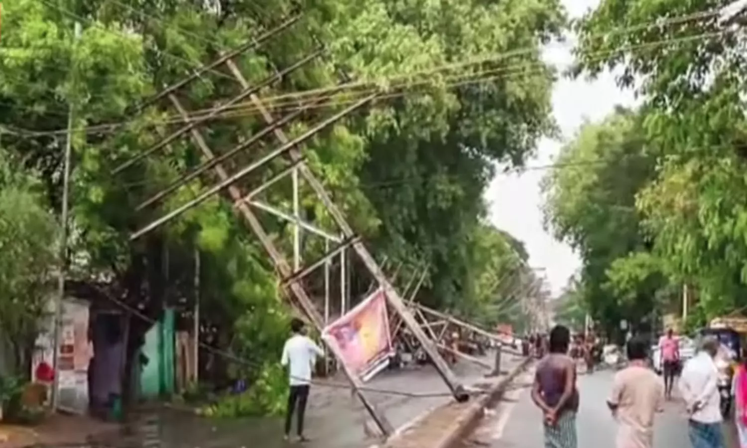 தற்போது சம்பவ இடத்திற்கு விரைந்த மின் உழியர்கள் மின்கம்பங்களை அகற்றும் பணியில் தீவிரமாக ஈடுபட்டு வருகின்றனர்.
