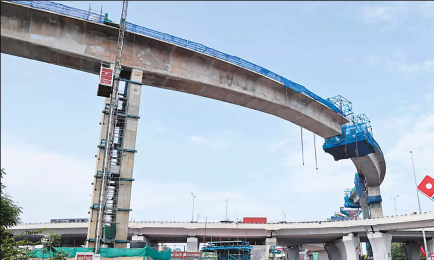இந்த பகுதிகளில் எந்த சாலையும் மூடவில்லை. ஏற்கனவே சற்று தூரம் இடைவெளியில் அமைக்கப்பட்ட 6 பிரமாண்டமான தூண்களையும் ஒன்று சேர்க்கும் வகையில், கட்டுமான பணிகள் நடந்தது. ஒரே நேரத்தில் 110 டன் வரை எடையுள்ள கட்டுமான பொருட்களை கொண்டு சென்று, பணிகள் மேற்கொள்ள 'பார்ம் டிராவலர்' என்ற கட்டுமான கருவிகளும் பயன்படுத்தப்பட்டன.