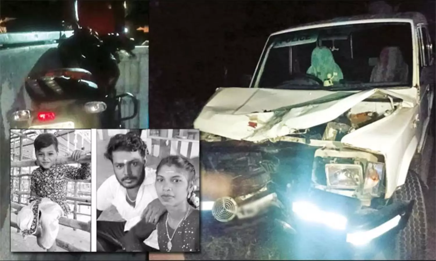 போலீஸ் வாகனம் மோதி குழந்தையுடன் பெற்றோர் பலியான சோகம் - சாலை மறியலில் ஈடுபட்ட மக்கள்