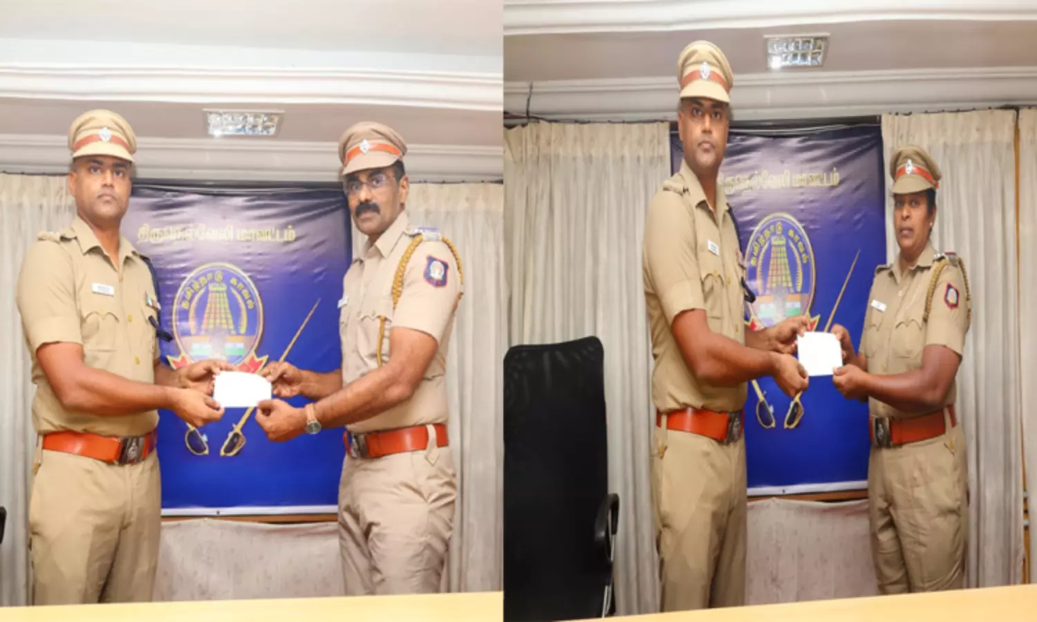 அவர் வழங்கிய பண வெகுமதியை, திருநெல்வேலி மாவட்ட எஸ்.பி. சிலம்பரசன் நேற்று சம்மந்தப்பட்ட காவல் அலுவலர்கள் மற்றும் காவலர்களிடம் மாவட்ட காவல் அலுவலகத்திற்கு அவர்களை நேரில் அழைத்து, அவர்கள் செய்த நற்பணிகளை பாராட்டி வழங்கினார்.