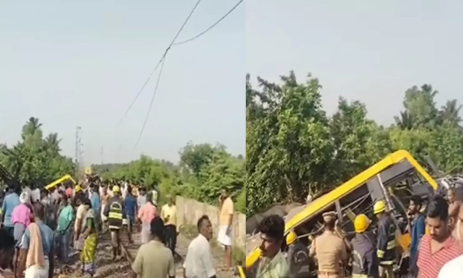 இந்நிலையில், பள்ளி வேன் சென்றபோது, அந்த பகுதியின் வழியே சிதம்பரம் நோக்கி ரெயில் சென்றது. அது பள்ளி வேன் மீது மோதி கோர விபத்து ஏற்பட்டது. இந்த சம்பவத்தில், வேன் பல மீட்டர் தூரத்திற்கு இழுத்து செல்லப்பட்டது. இதில் வேனில் இருந்த குழந்தைகள் தூக்கி வீசப்பட்டனர்.
