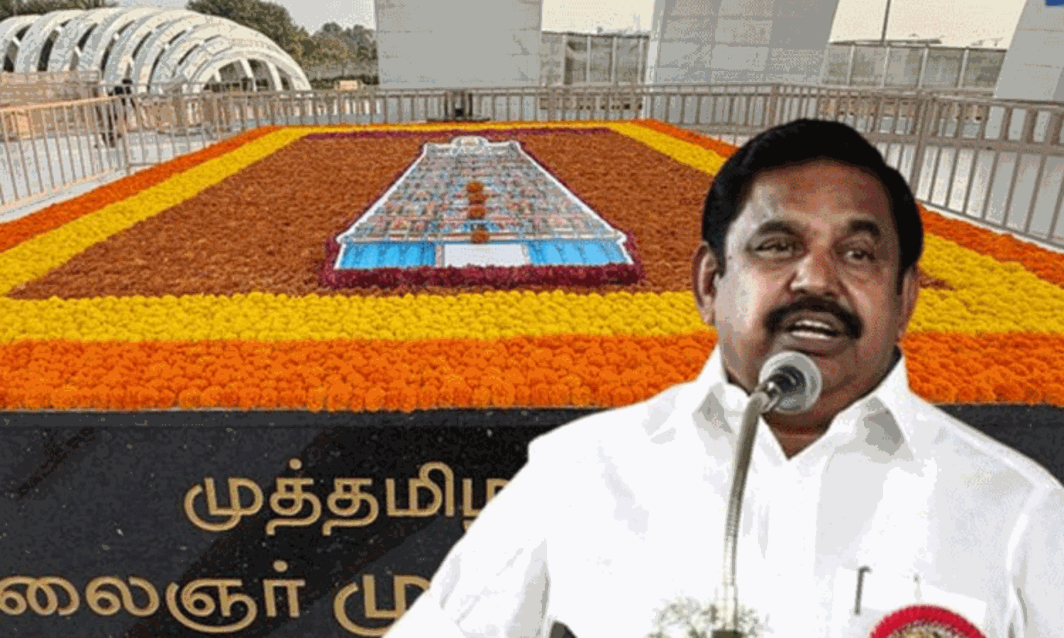 கருணாநிதி நினைவிடத்தில் கோவில் கோபுர அலங்காரம்: அதிமுக கண்டனம்