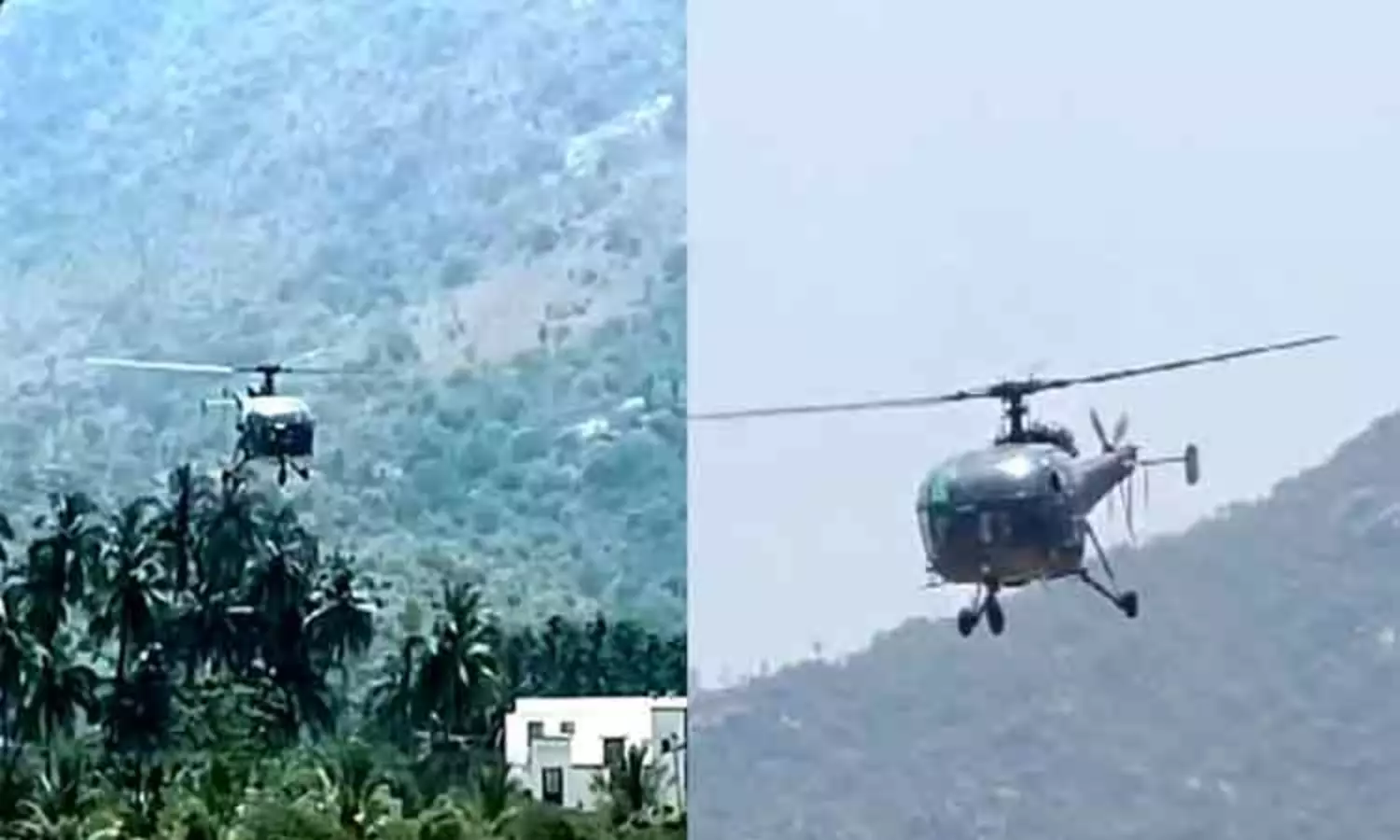 ஹெலிக்காப்டர் மூலம் தீவிரவாத கும்பலை சுற்றி வளைத்து தாக்குதல் நடத்துவது குறித்து பயிற்சி மேற்கொண்டு வருகின்றனர்.;