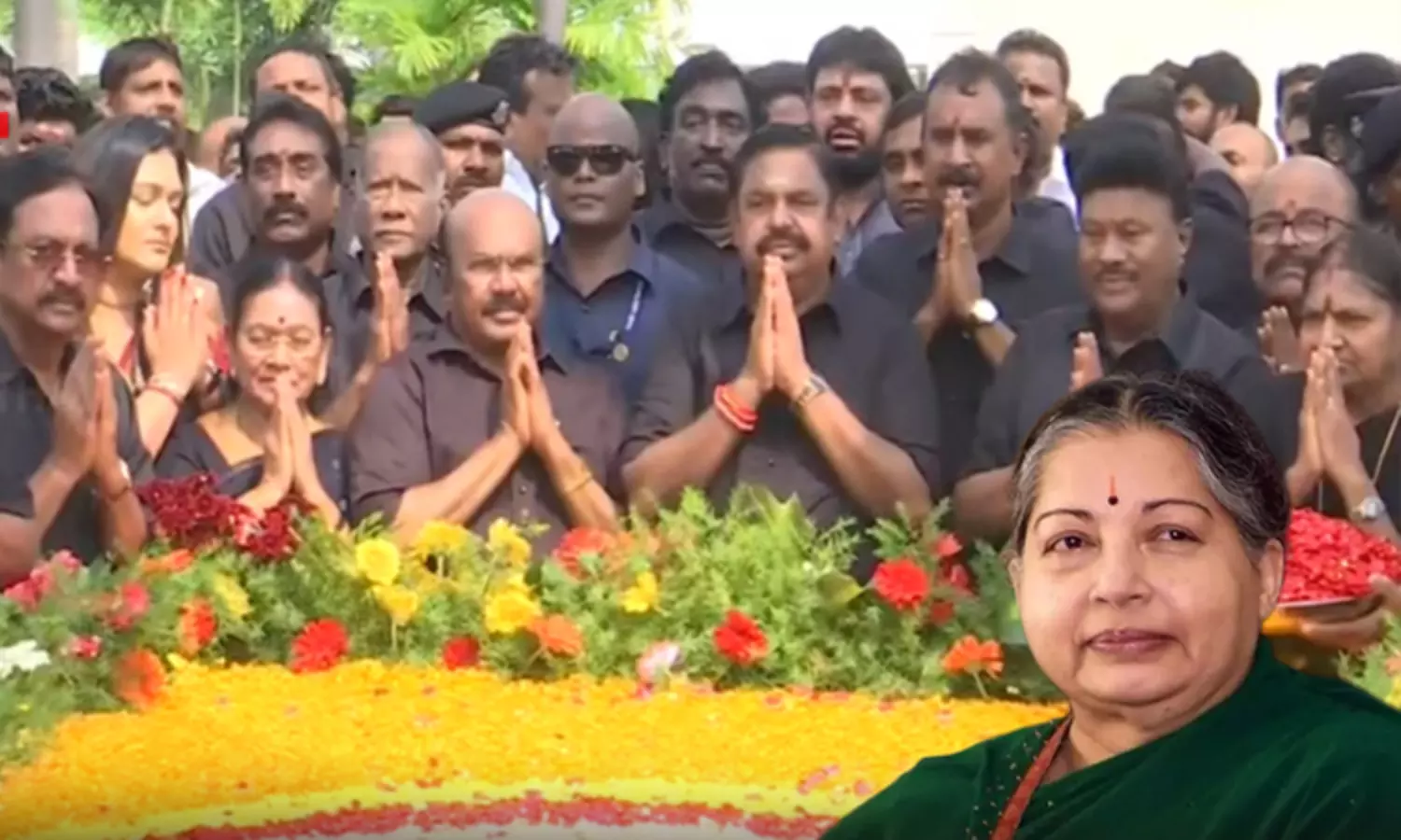 அவர் மறைந்து 9 ஆண்டுகள் ஆனாலும், அ.தி.மு.க. தொண்டர்களால் என்றென்றும் போற்றப்பட்டு வருகிறார். இந்த நிலையில் ஜெயலலிதாவின் நினைவு தினத்தை முன்னிட்டு அதிமுக பொதுச்செயலாளர் எடப்பாடி பழனிசாமி சென்னை மெரினா கடற்கரையில் உள்ள ஜெயலலிதாவின் நினைவிடத்தில் மலர்தூவி அஞ்சலி செலுத்தினார்.