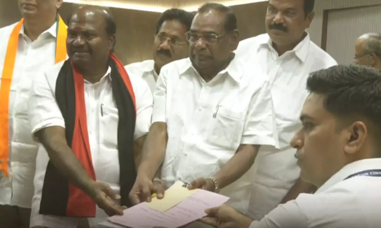 விடுமுறை தினங்களை தவிர்த்து கடந்த 10 மற்றும் 13-ந்தேதி என 2 நாட்கள் மட்டும் வேட்புமனு தாக்கல் நடைபெற்றது. இந்த 2 நாட்களில் 9 பேர் வேட்புமனுவை தாக்கல் செய்தனர். இன்று காலை 11 மணி முதல் மதியம் 3 மணி வரை வேட்புமனு தாக்கல் செய்ய கடைசி வாய்ப்பாகும். இந்த நிலையில் ஈரோடு கிழக்கு தொகுதி இடைத்தேர்தலில் தி.மு.க. சார்பில் போட்டியிடும் வேட்பாளர் வி.சி.சந்திரகுமார் தற்போது வேட்புமனு தாக்கல் செய்துள்ளார். தேர்தல் நடத்தும் அலுவலரிடம் வேட்புமனுவை அவர் சமர்ப்பித்தார்.