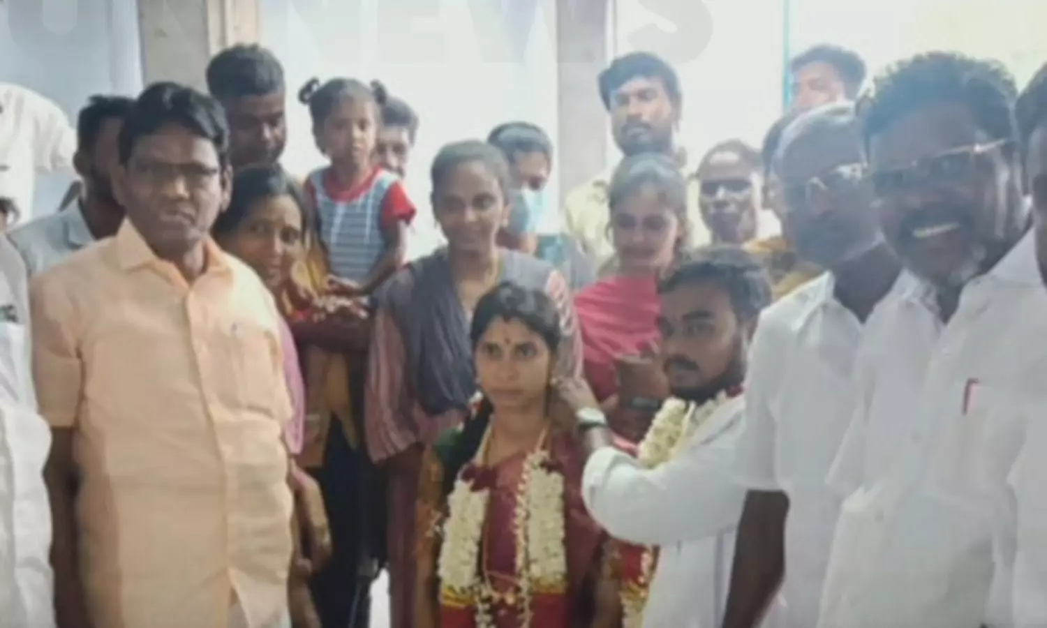 வெவ்வேறு சமூகத்தை சேர்ந்த இவர்களுடைய திருமணம் மார்க்சிஸ்ட் கம்யூனிஸ்டு கட்சி அலுவலகத்தில் பரபரப்பாக நடந்தது.;
