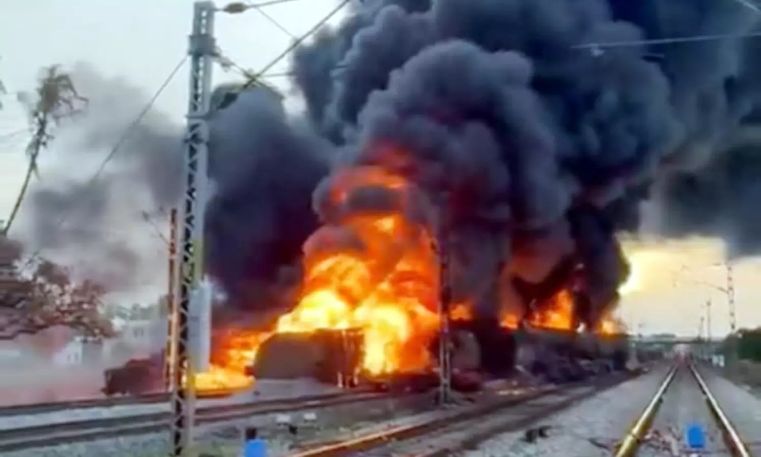 சரக்கு ரெயிலில் தீ விபத்து: 70% தீ கட்டுக்குள் கொண்டுவரப்பட்டதாக தகவல்