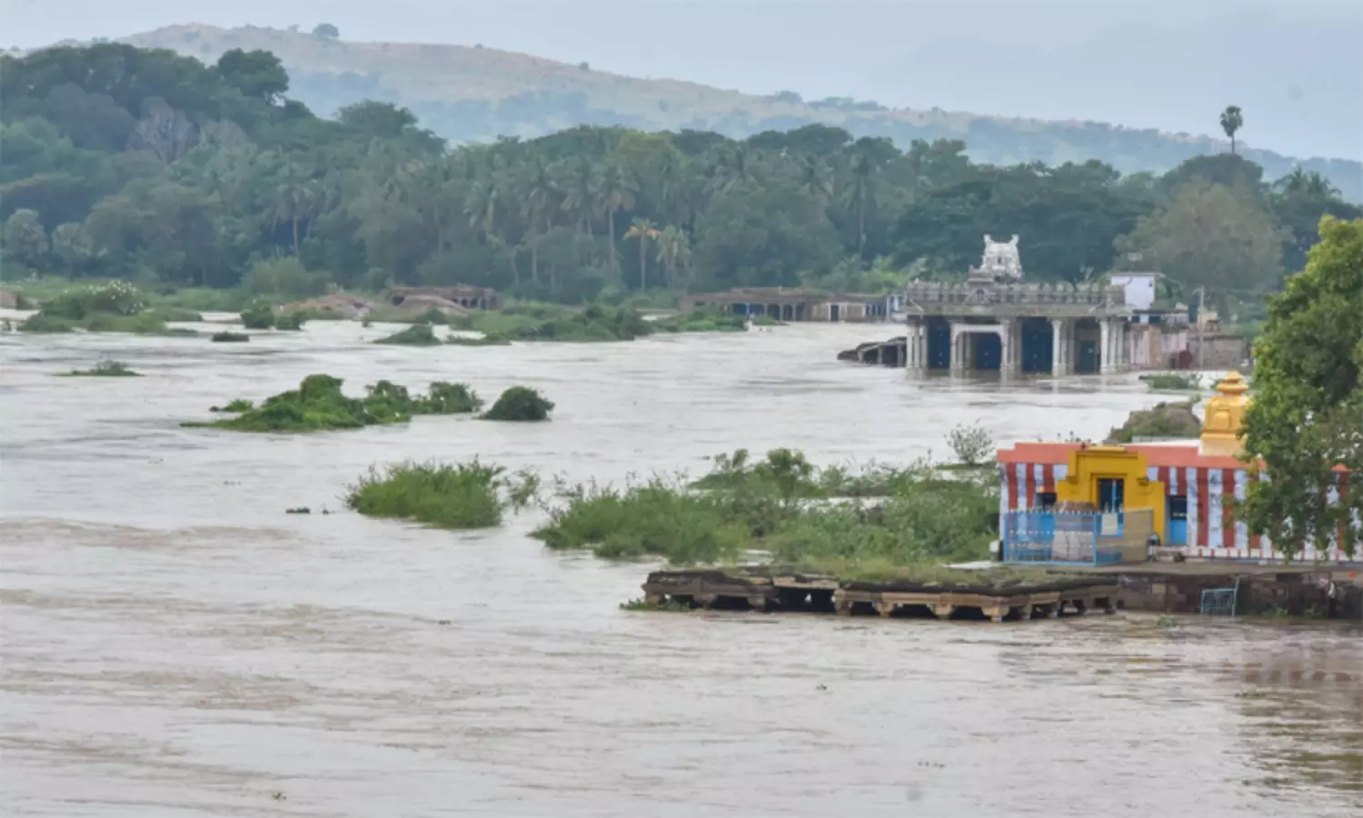 இதுதவிர மேற்கு தொடர்ச்சி மலையில் கனமழை பெய்து வருவதால் அணைகளுக்கு நீர்வரத்து அதிகரித்துக்கொண்டே இருக்கிறது. பாபநாசம் அணை, மணிமுத்தாறு அணைகள் நிரம்பும் தருவாயில் இருப்பதால் கூடுதல் தண்ணீர் திறந்து விடப்பட்டுள்ளது. மேலும் மலைப்பகுதியில் உள்ள காட்டாறுகள், ஊர்ப்பகுதிகளில் பெய்து வரும் மழைநீரும் தாமிரபரணி ஆற்றில் கலந்து வினாடிக்கு 19 ஆயிரம் கன அடிக்கு மேல் தண்ணீர் செல்கிறது. இதனால் ஆற்றில் 2-வது நாளாக வெள்ளம் பெருக்கெடுத்து நெல்லை குறுக்குத்துறை முருகன் கோவிலை சூழ்ந்தவாறு செல்கிறது. மேலும் அங்கு செல்லும் நடைபாலத்தையும் மூழ்கடித்தது.