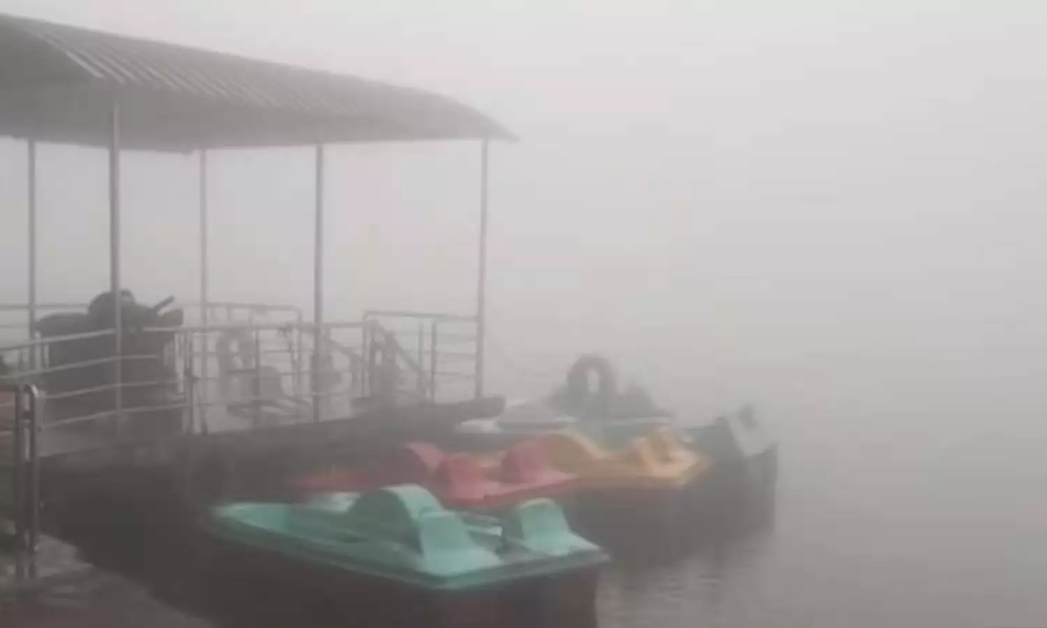 பனி மூட்டம் அதிகரித்து காணப்பட்டதால் ஏற்காட்டில் படகு சவாரி தற்காலிகமாக நிறுத்தப்பட்டது.;