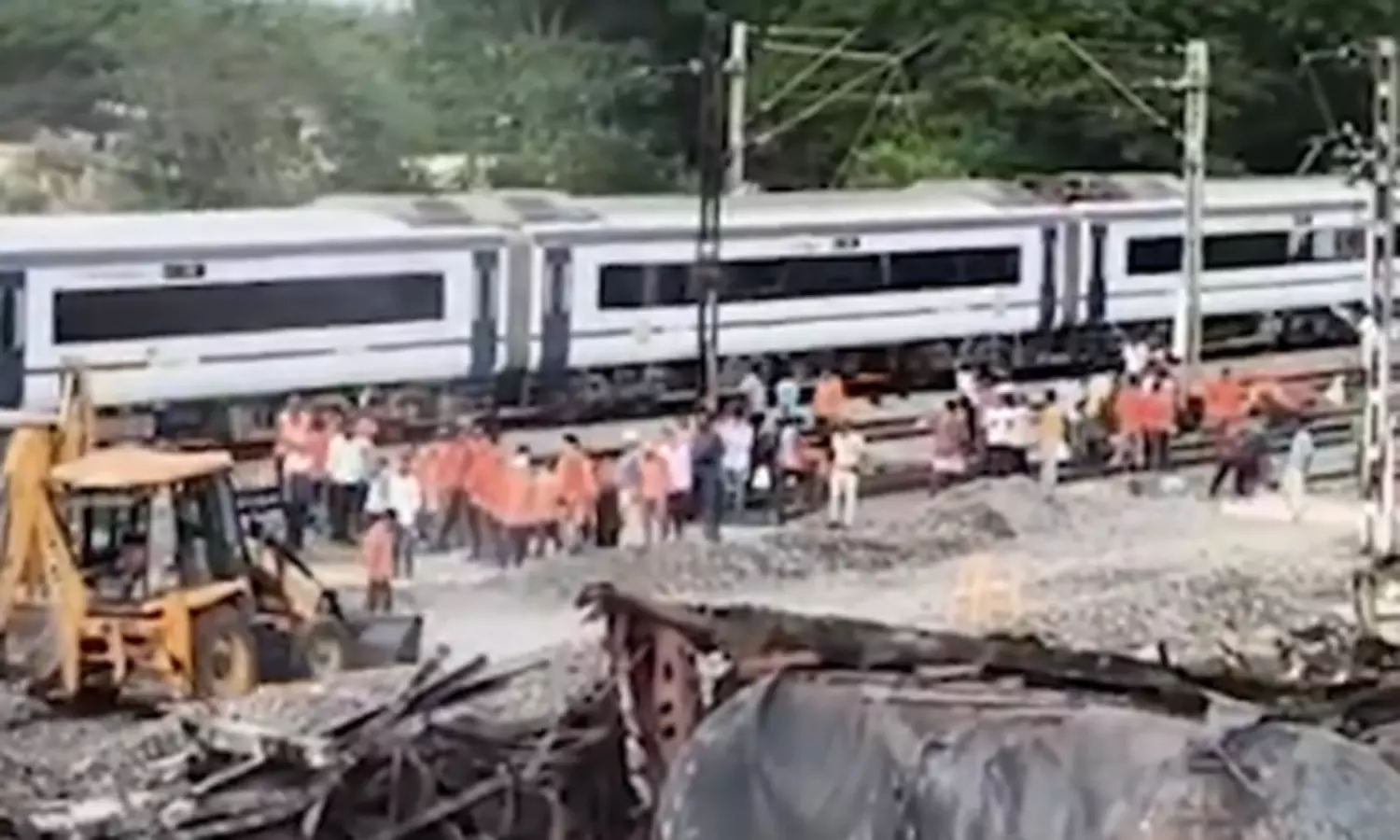சரக்கு ரெயில் தீ விபத்து: 17 மணி நேரத்திற்கு பின்பு ரெயில் சேவை மீண்டும் தொடக்கம்