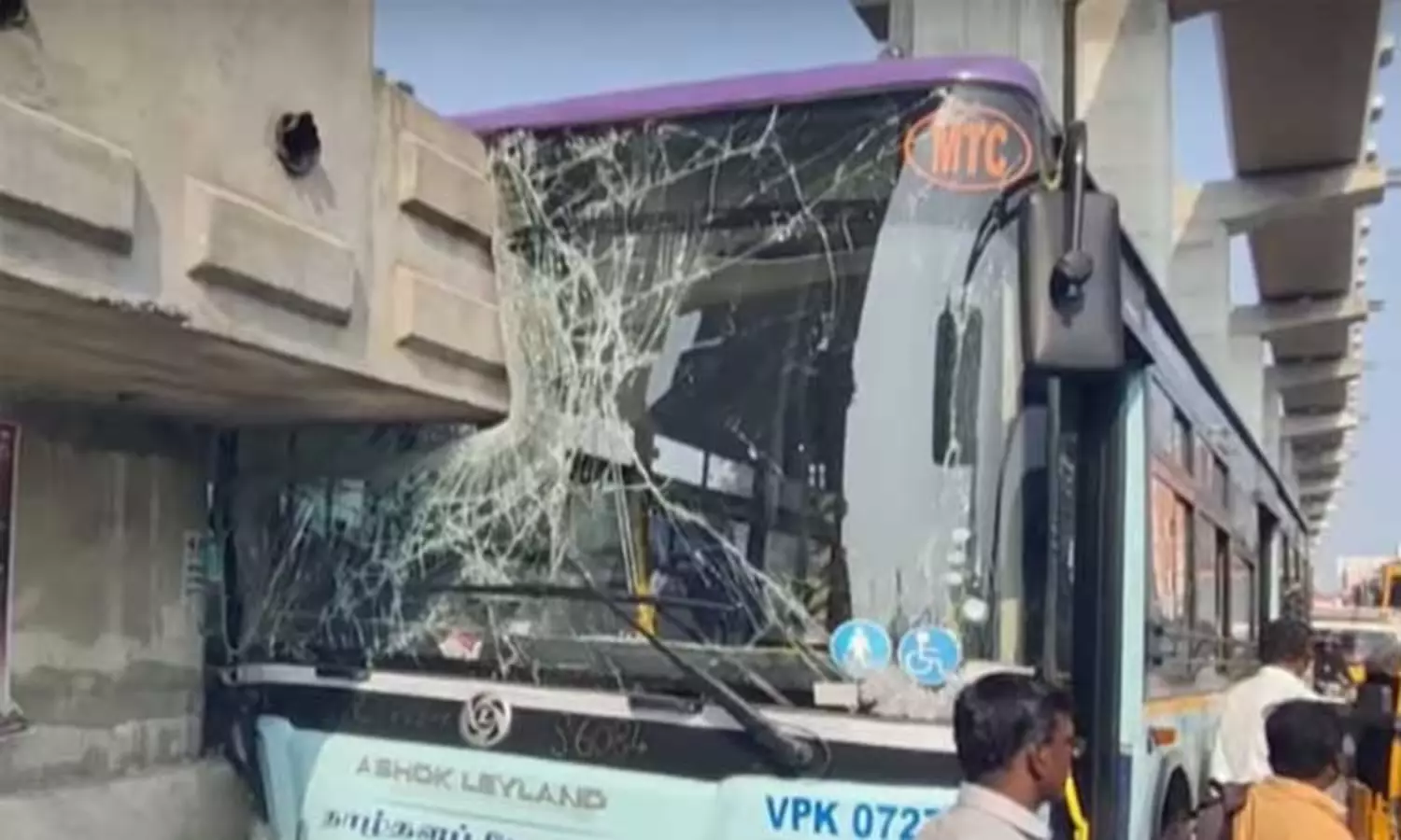 மெட்ரோ பாலத்தின் தூண் மீது அரசு பேருந்து மோதி விபத்து: 10-க்கும் மேற்பட்ட பயணிகள் காயம்