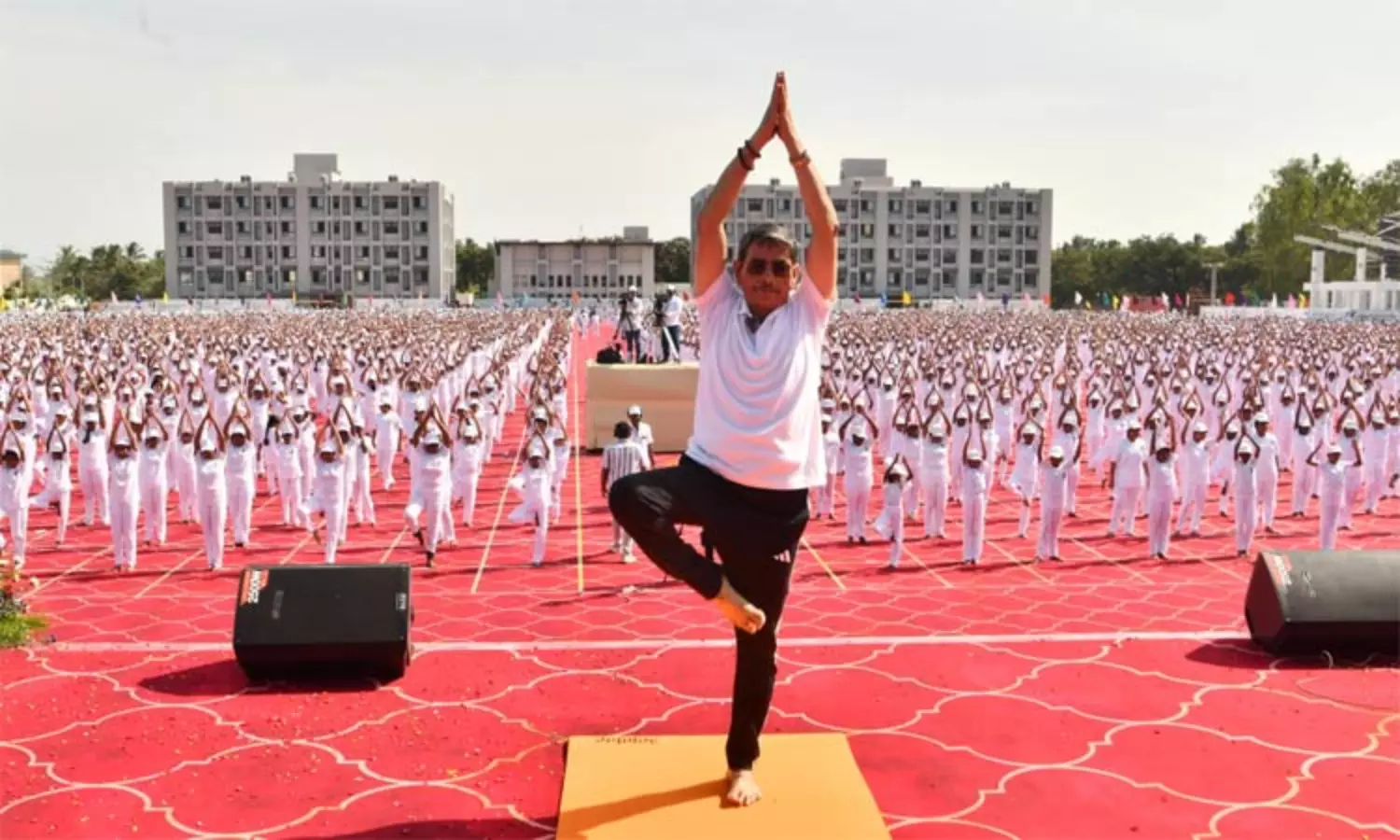 மதுரையில் 10 ஆயிரம் மாணவர்களுடன் சேர்ந்து யோகா செய்த கவர்னர் ஆர்.என்.ரவி