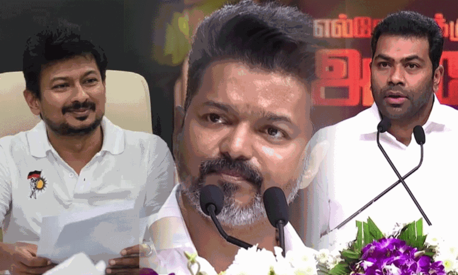 நேற்று மாலை சென்னையில் நடந்த 'எல்லோருக்குமான தலைவர் அம்பேத்கர்' நூல் வெளியீட்டு விழாவில் பேசிய தமிழக வெற்றிக் கழக தலைவர் விஜய், "விடுதலை சிறுத்தைகள் கட்சியின் தலைவர் தொல் திருமாவளவன் அவர்களால் வர முடியாமல் போய்விட்டது. அம்பேத்கர் அவர்களுடைய புத்தக வெளியீட்டு விழாவிற்கு கூட கலந்து கொள்ள முடியாத அளவிற்கு கூட்டணிக் கட்சிகள் சார்பில் எவ்வளவு அழுத்தம் இருக்கும் என்று என்னால் யூகிக்க முடிகிறது நான் இப்போது சொல்கிறேன் அவருடைய மனசு முழுக்க முழுக்க இன்றைக்கு நம்மளோட தான் இருக்கிறது" என்று கூறி இருந்தார்.