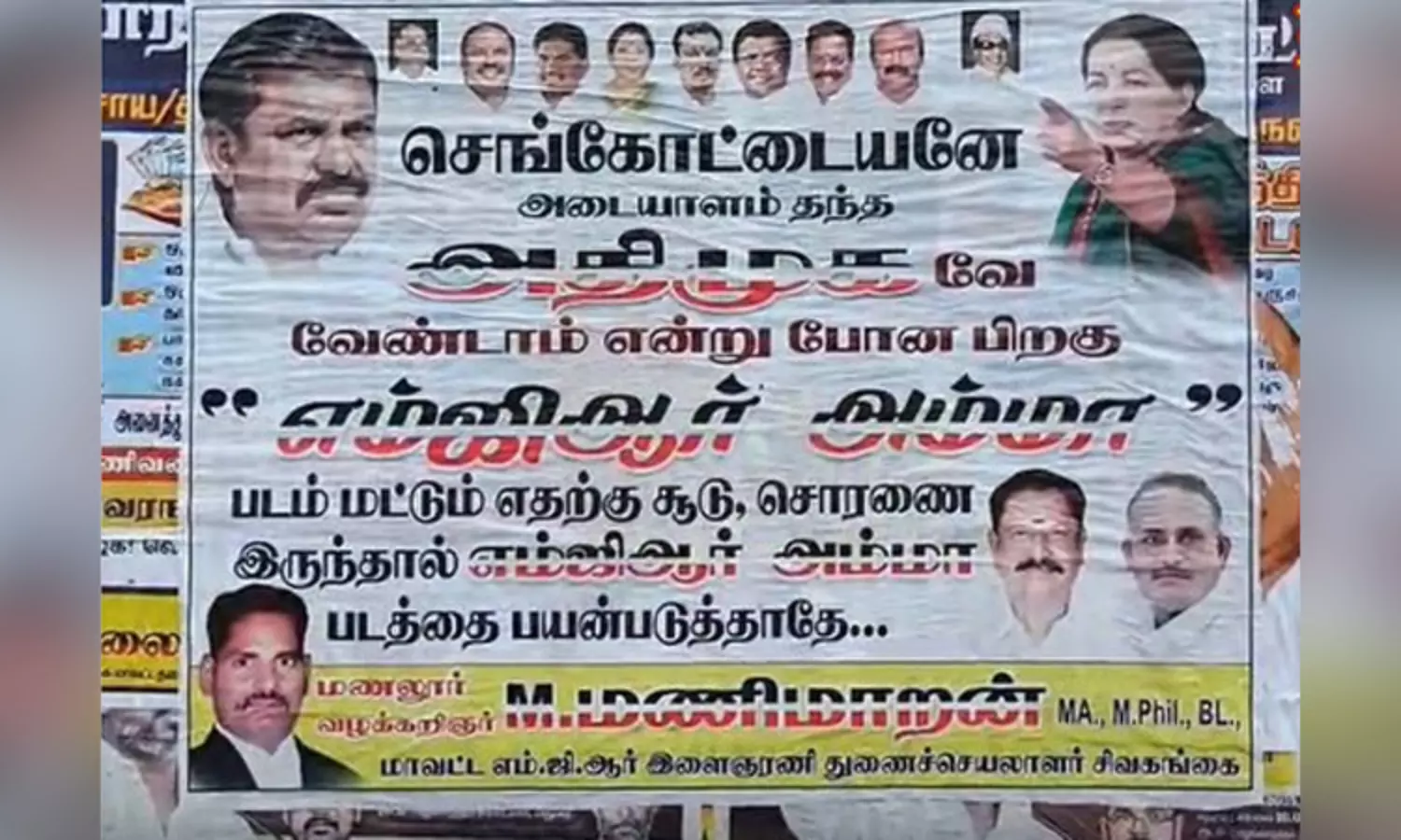இந்த நிலையில், தவெகவில் இணைந்த செங்கோட்டையனை கண்டித்து மானாமதுரையில் அதிமுகவினர் போஸ்டர் ஒட்டியுள்ளனர். அதில், “செங்கோட்டையனே அடையாளம் தந்த அதிமுகவே வேண்டாம் என்று போன பிறகு ‘எம்.ஜி.ஆர். ஜெயலலிதா’ படம் மட்டும் எதற்கு சூடு, சொரணை இருந்தால் எம்.ஜி.ஆர்., ஜெயலலிதா படங்களை பயன்படுத்தாதே....” என்று குறிப்பிடப்பட்டுள்ளது. இந்த போஸ்டரால் மானாமதுரையில் பரபரப்பு ஏற்படுள்ளது.