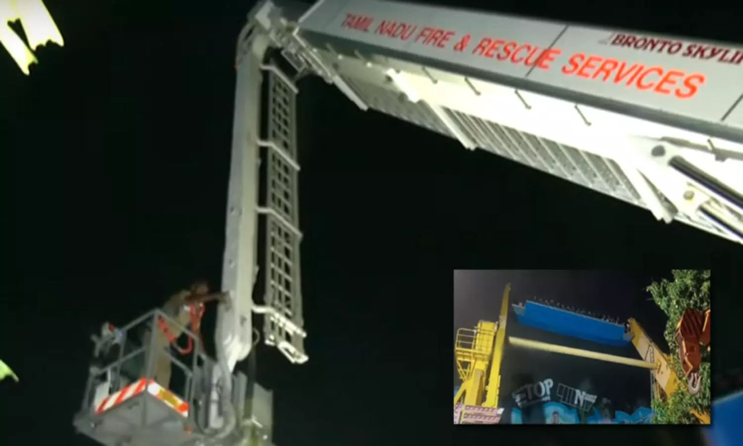 தகவல் அறிந்ததும் நீலாங்கரை போலீசாரும், துரைப்பாக்கம், கிண்டி, நீலாங்கரை தீயணைப்பு வீரர்களும் சம்பவ இடத்துக்கு விரைந்தனர். பின்னர் ராட்சத ராட்டினத்தில் அந்தரத்தில் தொங்கிக்கொண்டு இருந்தவர்களை 'பிராண்டோ லிப்ட்' மூலமாக மீட்டனர். 3 மணி நேரத்துக்கு பின்னர் அவர்கள் கீழே வந்ததும் நிம்மதி பெருமூச்சு விட்டனர். இந்த சம்பவத்தால் அங்கு பெரும் பரபரப்பு ஏற்பட்டது.