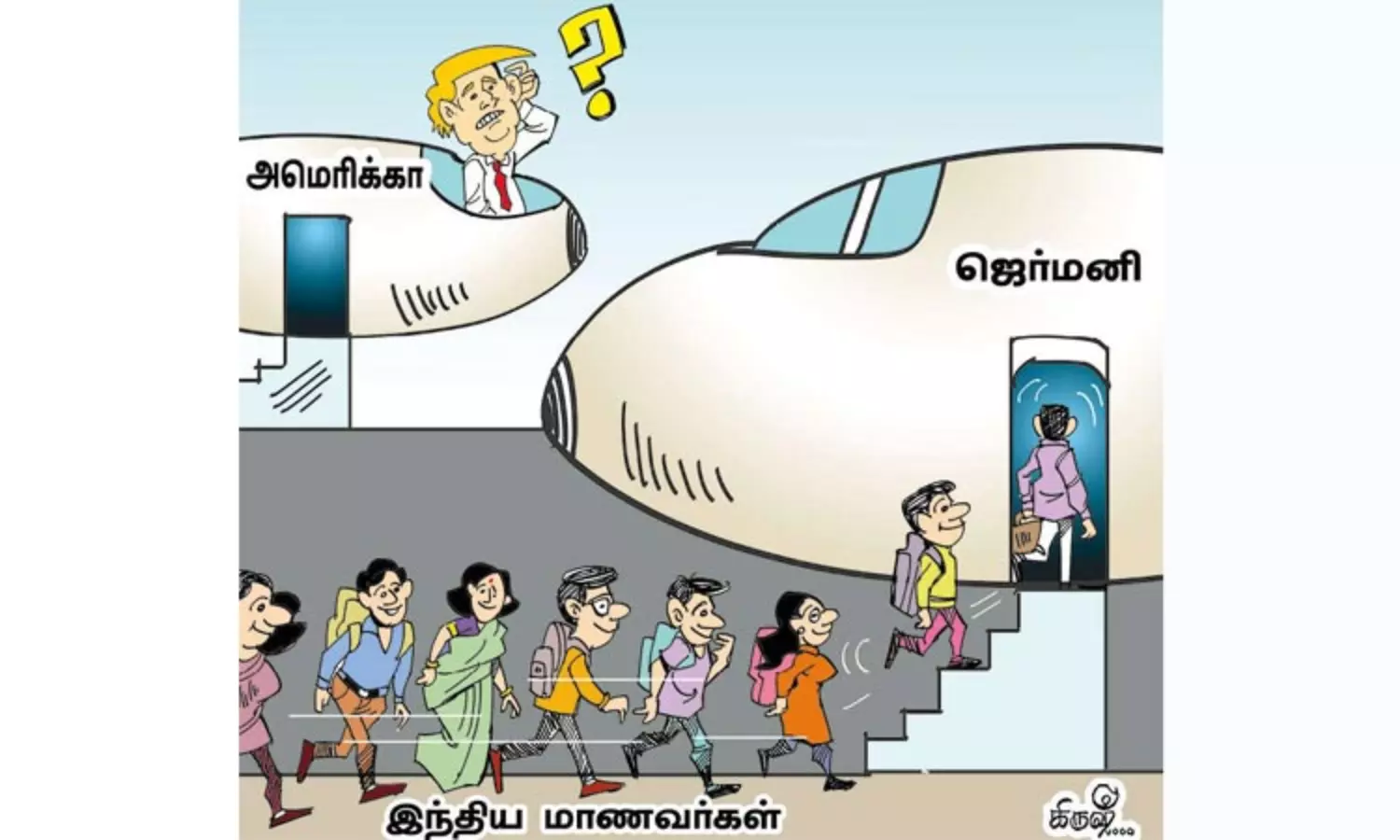 அதுபோல நிறுவனங்களும் அமெரிக்காவிலேயே தங்கள் தொழிற்சாலைகளையும், அலுவலகங்களையும் தொடங்கவேண்டும் என்று கட்டாயப்படுத்துகிறார். இந்த நிலையில் இப்போது இந்திய மாணவர்களின் பார்வை ஜெர்மனி மீது விழுந்திருக்கிறது. கடந்த ஆண்டு நிலவரப்படி 13 லட்சம் இந்திய மாணவர்கள் வெளிநாடுகளில் படித்து வருகிறார்கள். கடந்த ஆண்டு மட்டும் 34 ஆயிரத்து 134 இந்திய மாணவர்கள், ஜெர்மனியில் உள்ள பல்வேறு பல்கலைக்கழகங்களில் சேர்ந்துள்ளனர். 2022-ல் ஜெர்மனியில் படிப்புக்காக சேரும் இந்திய மாணவர்களின் எண்ணிக்கை 13.2 சதவீதமாக இருந்த நிலையில் கடந்த ஆண்டு 32.6 சதவீதமாக அதிகரித்துள்ளது. அமெரிக்காவில் சேரும் மாணவர்களின் சதவீதம் கடந்த ஆண்டைவிட இப்போது 13 சதவீதம் குறைந்துள்ளது. இந்த 13 சதவீதமும் பெரும்பாலும் ஜெர்மனியைத்தான் நாடி சென்று இருக்கிறார்கள்.