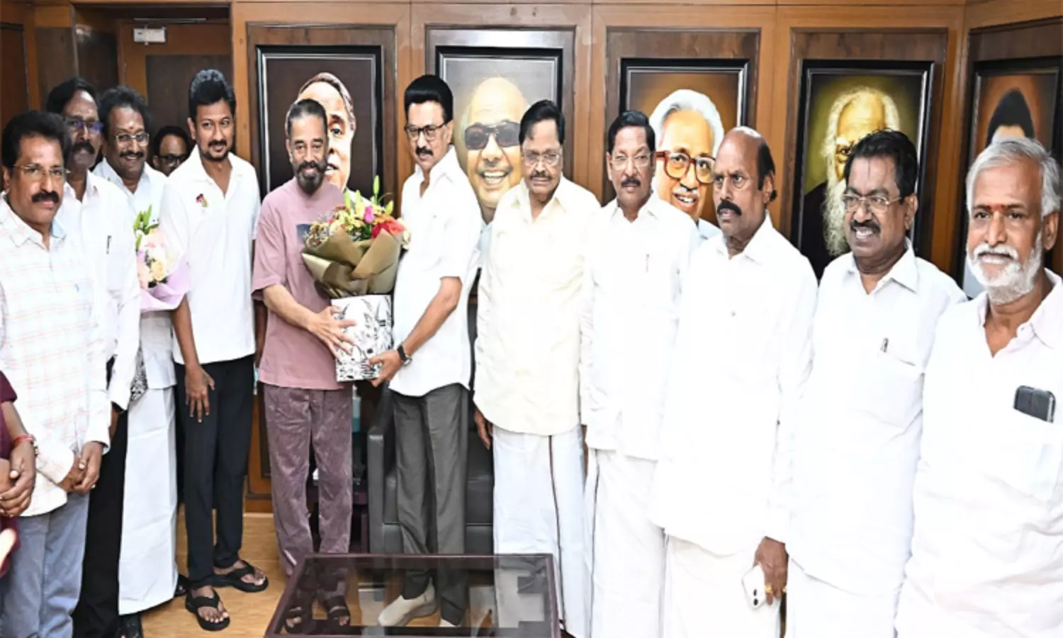 சென்னை அண்ணா அறிவாலயத்தில் தமிழ்நாடு முதல்-அமைச்சர் மு.க.ஸ்டாலினை, திமுக ஆதரவுடன் மாநிலங்களவை உறுப்பினருக்கான தேர்தலில் போட்டியிடும் மக்கள் நீதி மய்யத்தின் தலைவர் கமல்ஹாசன் இன்று நேரில் சந்தித்து நன்றி தெரிவித்து, வாழ்த்து பெற்றார். இந்த நிகழ்வின்போது துணை முதல்-அமைச்சர் உதயநிதி ஸ்டாலின், நீர்வளத்துறை அமைச்சர் துரைமுருகன், பொதுப்பணித்துறை அமைச்சர் எ.வ.வேலு, இந்து சமய அறநிலையத்துறை அமைச்சர் பி.கே.சேகர்பாபு, திமுக அமைப்புச் செயலாளர் ஆர்.எஸ்.பாரதி, செய்தித் தொடர்பு தலைவர் டி.கே.எஸ்.இளங்கோவன், தமிழ்நாடு வீட்டுவசதி வாரியத் தலைவர் பூச்சி எஸ்.முருகன், மக்கள் நீதி மய்யத்தின் பொதுச் செயலாளர் அருணாச்சலம், துணைத் தலைவர்கள் மவுரியா, தங்கவேல் மற்றும் நிர்வாகிகள் உடனிருந்தனர்.