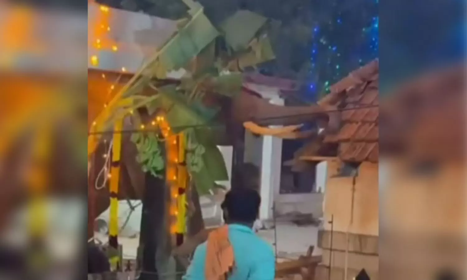 கோவிலைச் சுற்றி நடப்பட்டிருந்த மரங்கள், மதில் சுவர் ஆகியவற்றை யானை இடித்து சேதப்படுத்தியது.;
