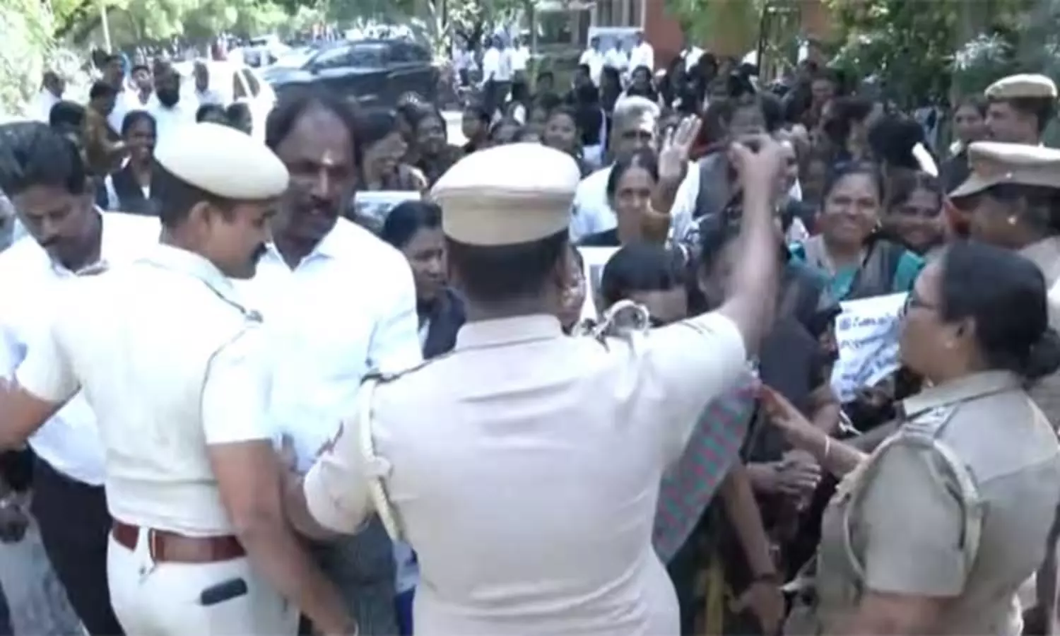 இதனிடையே போராட்டத்தில் ஈடுபட்ட பெண் வழக்கறிஞர்கள் திரண்டு, கோர்ட்டு வளாகத்தில் உள்ள இ-பைலிங் மையத்திற்கு பூட்டு போடச் சென்றனர். அப்போது அவர்களை போலீசார் தடுத்த நிலையில், இரு தரப்புக்கும் இடையே வாக்குவாதம் ஏற்பட்டதால் கோர்ட்டு வளாகத்தில் சிறிது நேரம் பரபரப்பு ஏற்பட்டது.