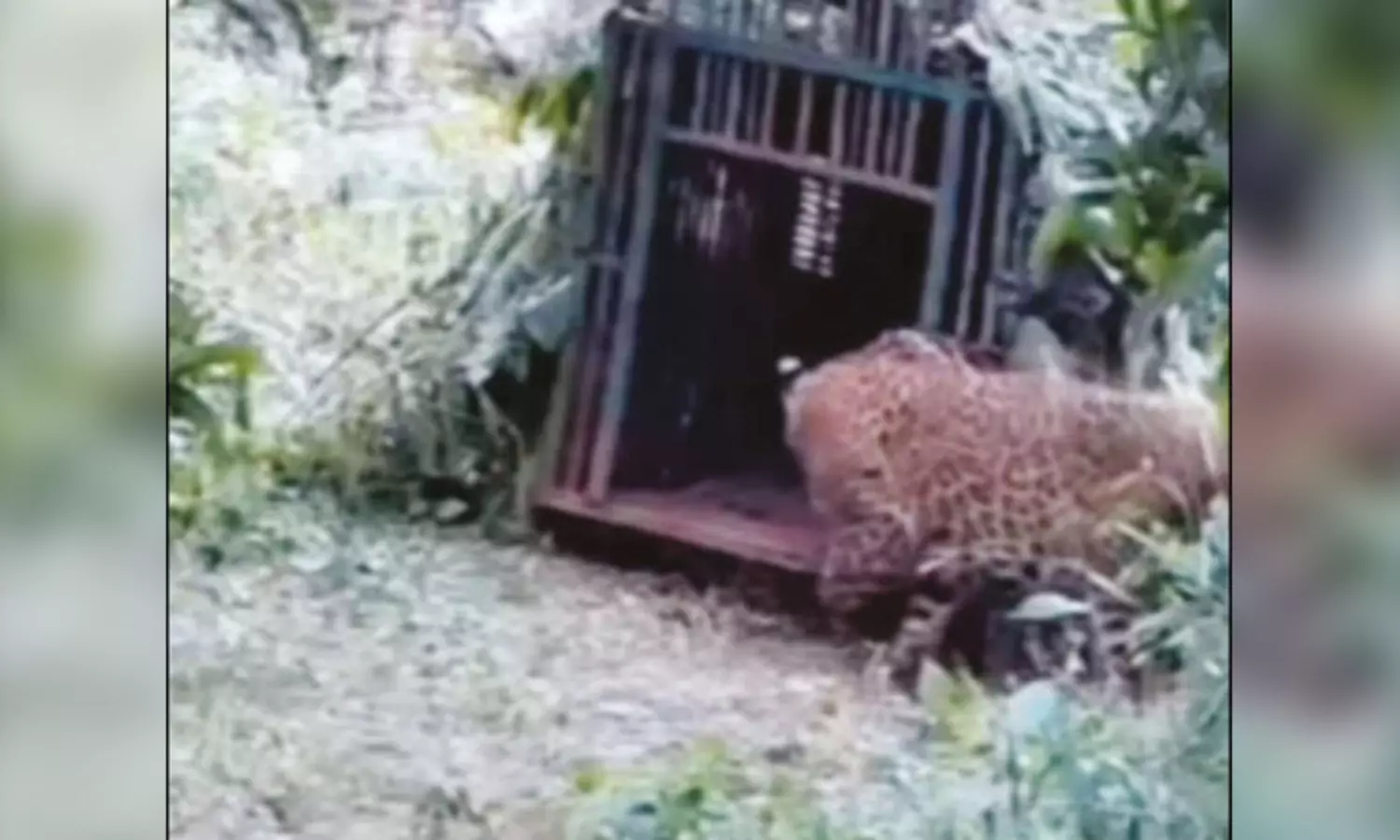 பெண்ணை கொன்ற புலியை பிடிப்பதற்காக வைத்த கூண்டில் சிக்கிய சிறுத்தை