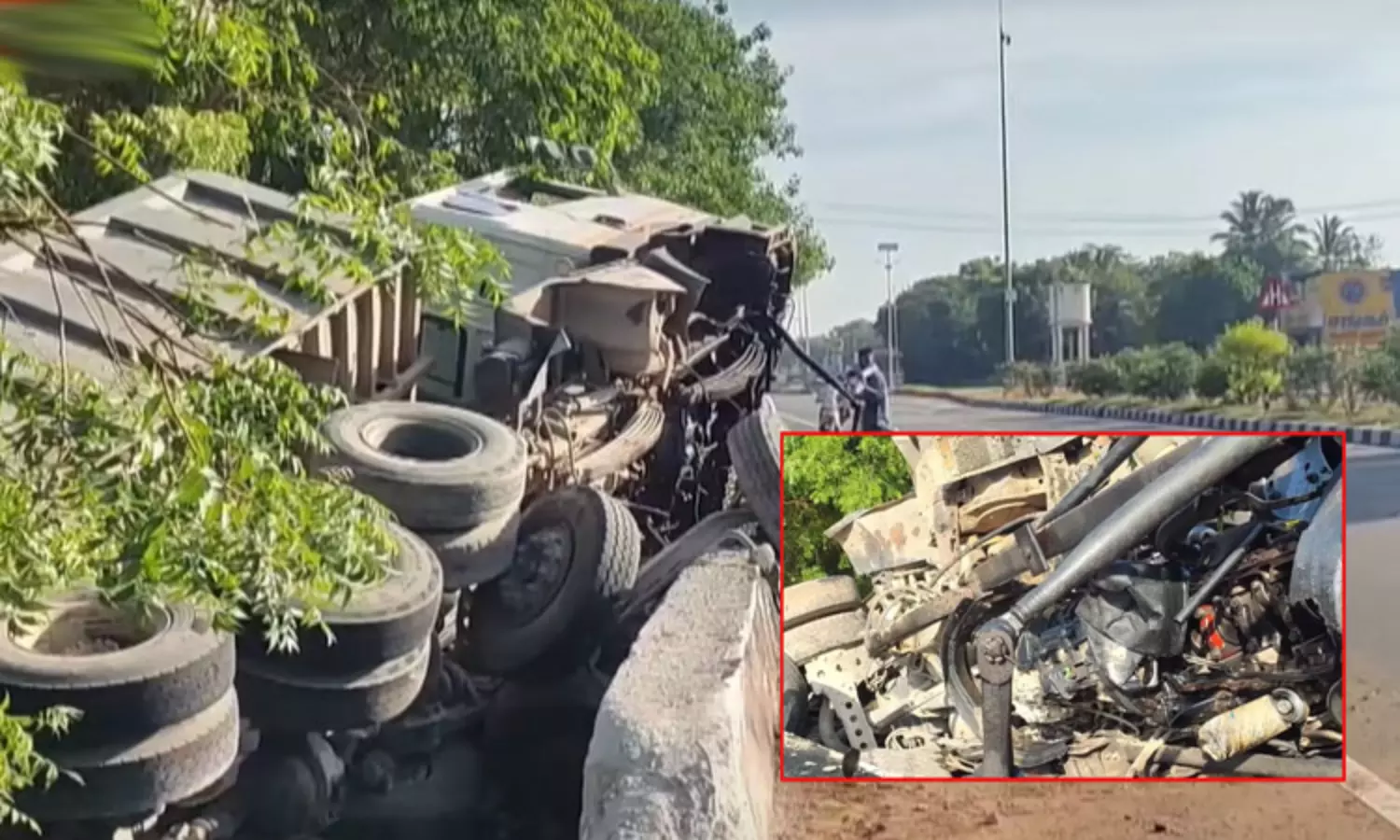 டிரைவரின் கட்டுப்பாட்டை இழந்த லாரியானது எதிர்பாராதவிதமாக விபத்துக்குள்ளானது.;