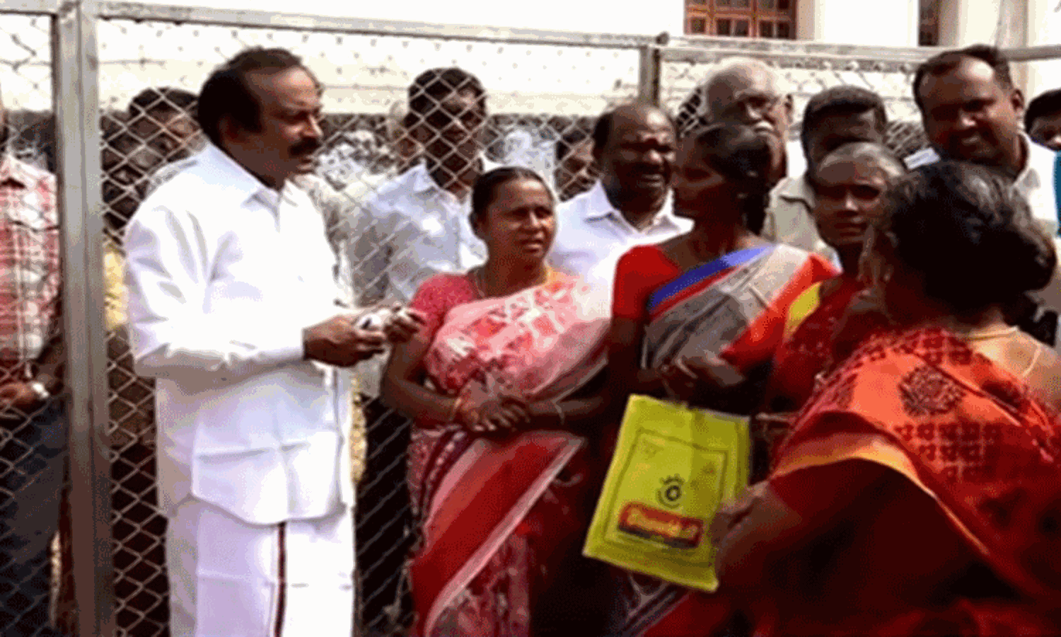 ஈரோடு மாவட்டம் சென்னிமலை அடுத்த மேலப்பாளையம் அருகே இரும்பு வலைகளால் செய்யப்பட்ட புதிய ஆட்டுப்பட்டியை வீட்டு வசதித்துறை அமைச்சர் முத்துசாமி பார்வையிட்டார்.