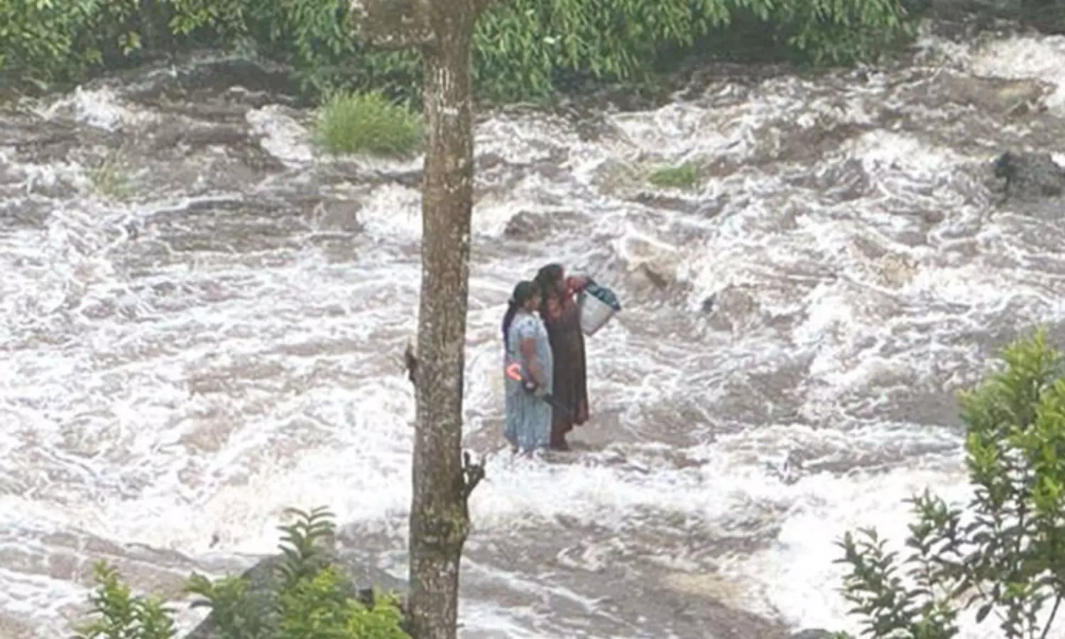 காட்டாற்று வெள்ளத்தில் சிக்கிய தாய்-மகள்.. அடுத்து நடந்த பரபரப்பு