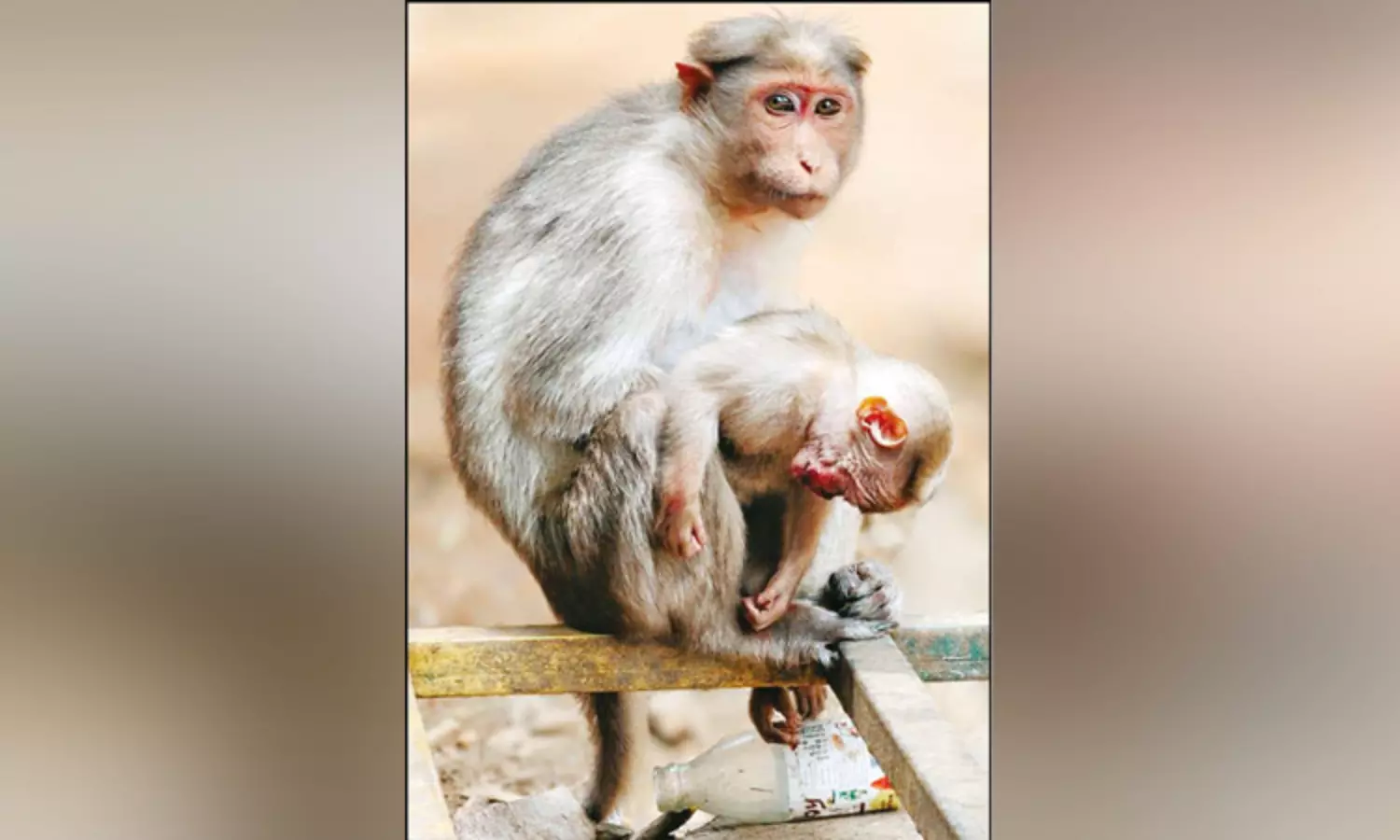 வனப்பகுதி முழுவதும் இறந்த குட்டியுடன் தாய் குரங்கு சுற்றித்திரிகிறது.;