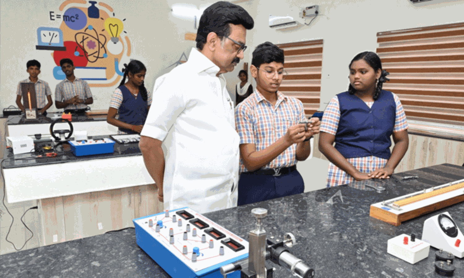 இந்த நிலையில், காஞ்சிபுரம் அருள்மிகு ஏகாம்பரநாதர் மெட்ரிக்குலேஷன் மேல்நிலைப் பள்ளியில் 11.15 கோடி ரூபாய் செலவில் தரை மற்றும் மூன்று தளங்களுடன் கட்டப்பட்டுள்ள கூடுதல் வகுப்பறைக் கட்டடம், சூளைமேடு, அஞ்சுகம் தொடக்கப்பள்ளியில் 2.79 கோடி ரூபாய் செலவில் கட்டப்பட்டுள்ள உணவருந்தும் கூடம், கலையரங்கம், கழிவறைகள், மேம்படுத்தப்பட்ட விளையாட்டு மைதானம் மற்றும் புனரமைக்கப்பட்ட பள்ளிக் கட்டடத்தை மாணவச் செல்வங்களின் பயன்பாட்டிற்காக முதல்-அமைச்சர் மு.க.ஸ்டாலின் திறந்துவைத்தார். அத்துடன், பள்ளி மாணவ, மாணவியருக்கு கல்வி உதவித் தொகையாக ரூ.10,000/-, கல்வி உபகரணங்களுடன் கூடிய புத்தகப்பைகள் மற்றும் மிதிவண்டிகளையும் வழங்கினார்.