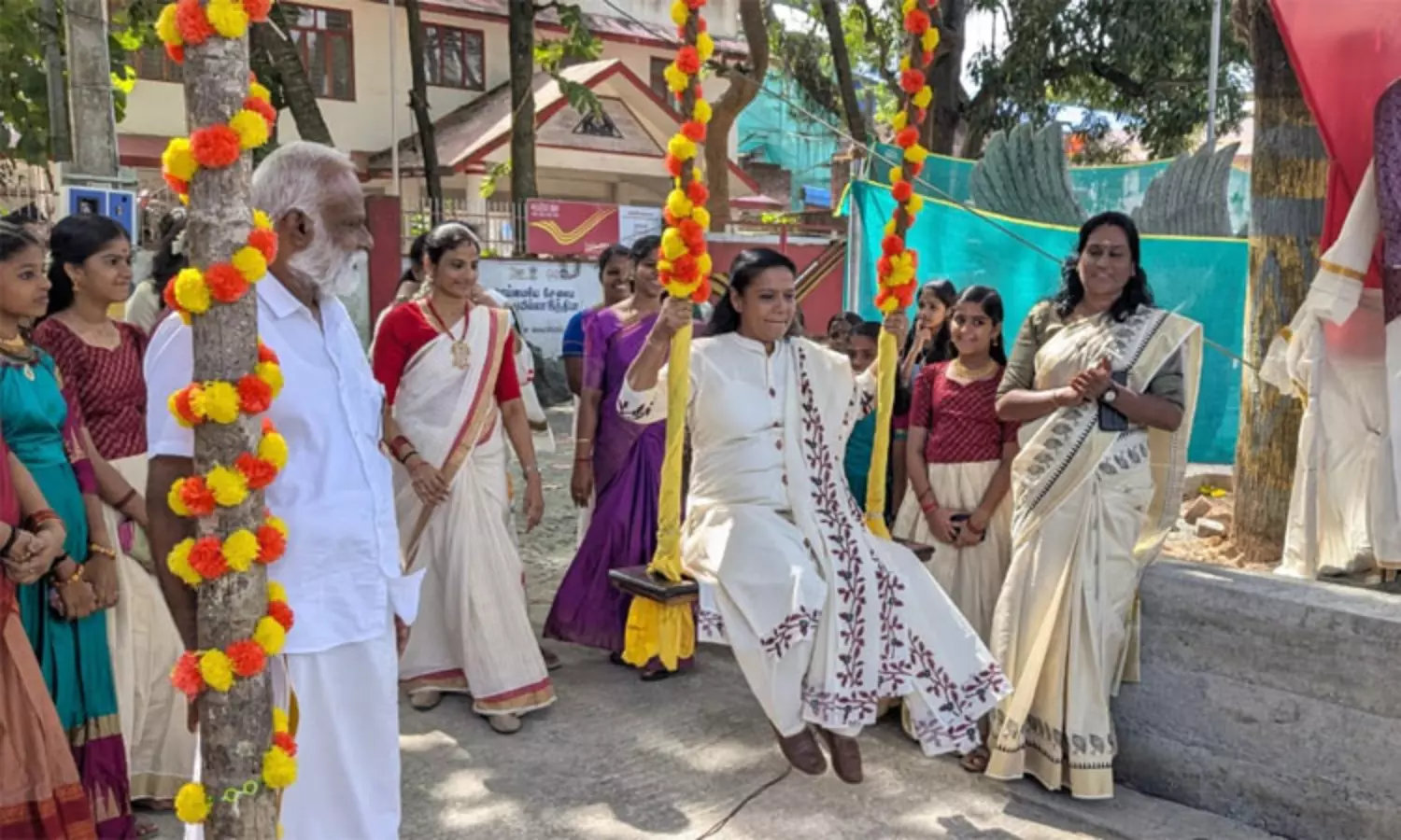 குழித்துறையில் பிரம்மாண்ட ஓணம் பண்டிகை துவங்கியது- ஓண ஊஞ்சல் ஆடிய எம்.எல்.ஏ.