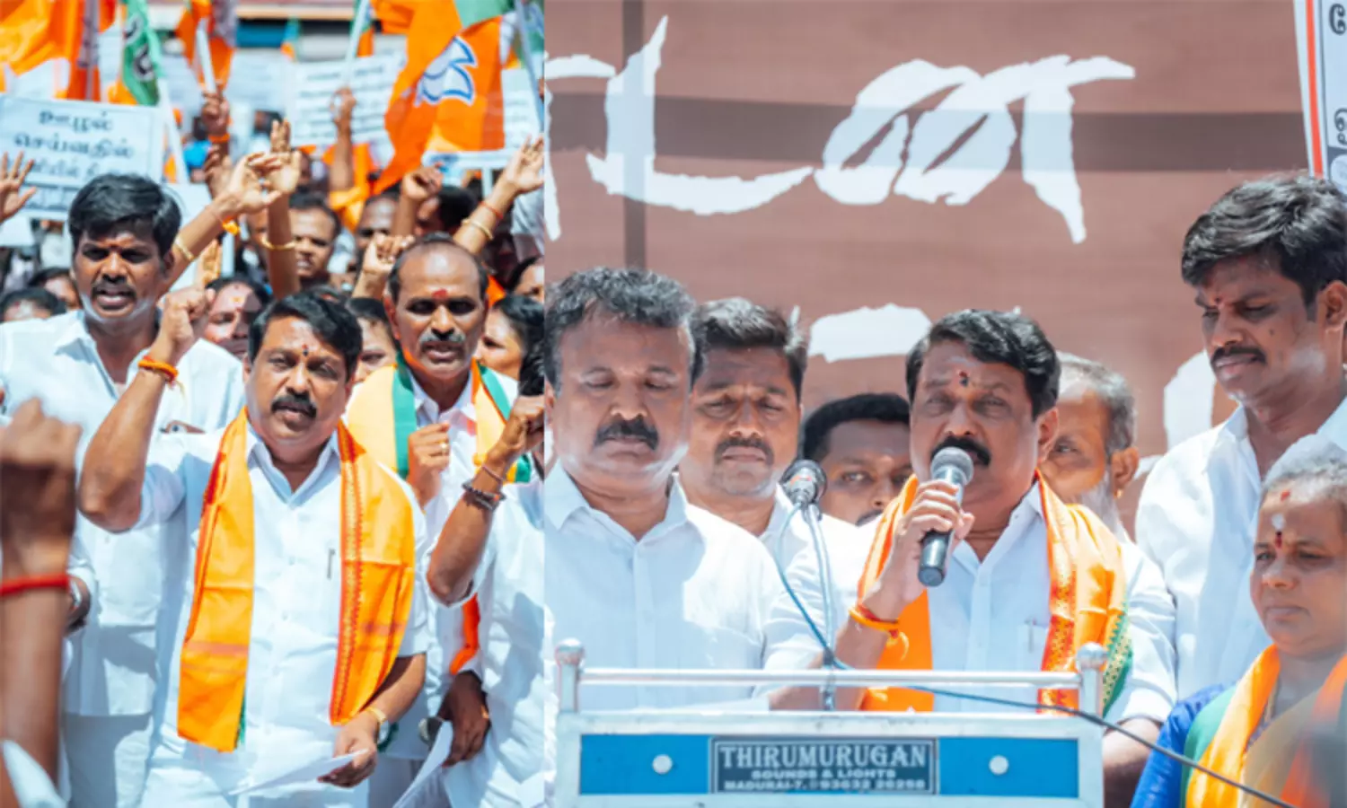 மதுரை மாநகராட்சியில் ரூ.150 கோடி ஊழல் நடந்திருப்பதை கண்டித்தும், திமுக அரசின் உலகளாவிய ஊழல் மீது நடவடிக்கை எடுக்க வலியுறுத்தியும், போதைப்பொருள் விற்பனையால் சீரழிந்து கிடக்கும் தமிழ்நாட்டை மீட்க வேண்டும் என்றும், மதுரை மாநகர் பாஜக சார்பில் மாபெரும் கண்டன ஆர்ப்பாட்டம் நடத்தப்பட்டது,