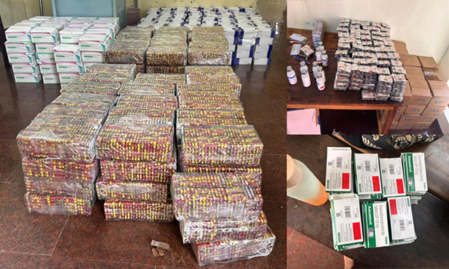 அப்போது படகுமூலம் இலங்கைக்கு கடத்துவதற்காக கொண்டுவரப்பட்டு கடற்கரையில் வைக்கப்பட்டிருந்த 15 மூட்டைகளில் Hydroxyprogesterone caproate injection IP- 890 எண்ணம், Intravenous fat Emulsion for infusion Syrup- 444 எண்ணம், Pregab Tablets- 7,50,000 எண்ணம், Disulfiram tablets 1.P (Esperal) Tablets- 77,900 எண்ணம், Cadila Tablet- 11,750 எண்ணம், Amantrel Tablet- 2,100 எண்ணம் என்றவாறு மாத்திரைகள், ஊசிகள் மற்றும் மருந்துகள் இருப்பது தெரியவந்தது. இந்த மருந்து பொருட்களின் மதிப்பு ரூ.1.25 கோடி ஆகும்.