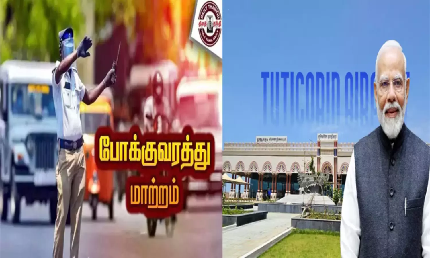 பிரதமர் பங்கேற்கும் நிகழ்ச்சி நடைபெறும் 26.7.2025 அன்று மதியம் 2 மணி முதல் இரவு 10 மணி வரையில் தூத்துக்குடியிலிருந்து திருநெல்வேலி மற்றும் திருநெல்வேலியிலிருந்து தூத்துக்குடி செல்லும் எந்த ஒரு கனரக (Heavy Vehicle's) மற்றும் சரக்கு வாகனங்களும் செல்வதற்கு அனுமதி கிடையாது. குறிப்பாக வாகைகுளம் விமான நிலையத்தை கடந்து செல்வதற்கு கண்டிப்பாக அனுமதி கிடையாது.